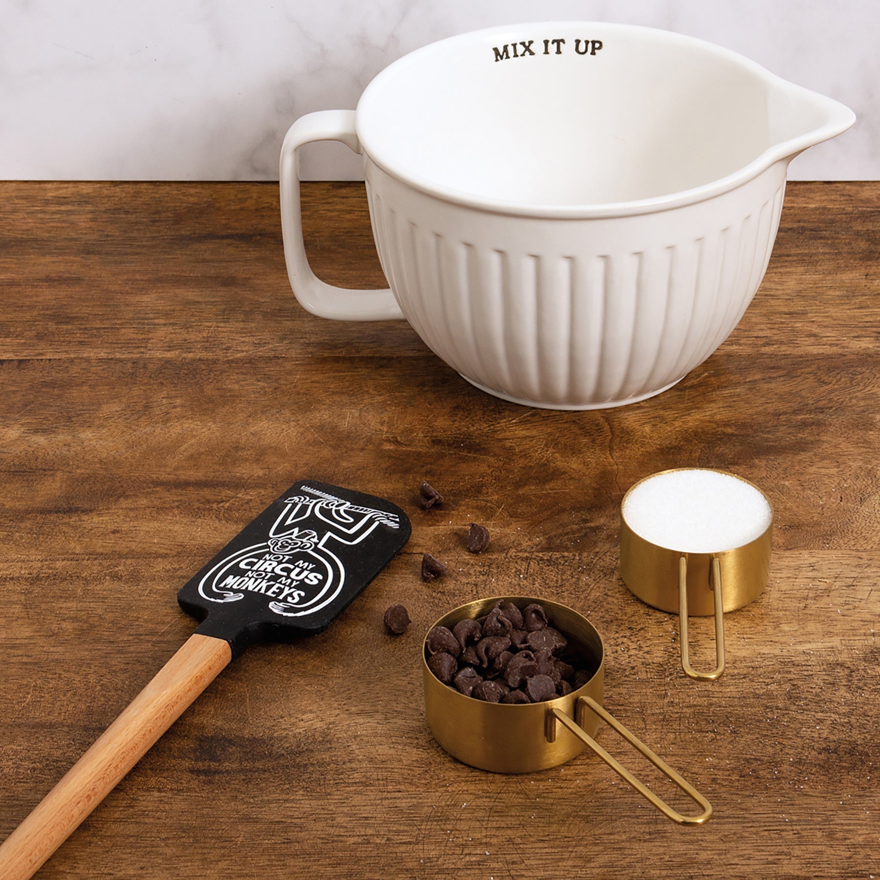 Add some whimsy to your kitchen with the Not My Circus Not My Monkeys Spatula, featuring a double-sided design with a circus monkey motif and a wooden handle engraved with a logo. This heat-resistant silicone spatula is perfect for stirring and scraping, making it a fun and practical gift for any cooking enthusiast in your life.