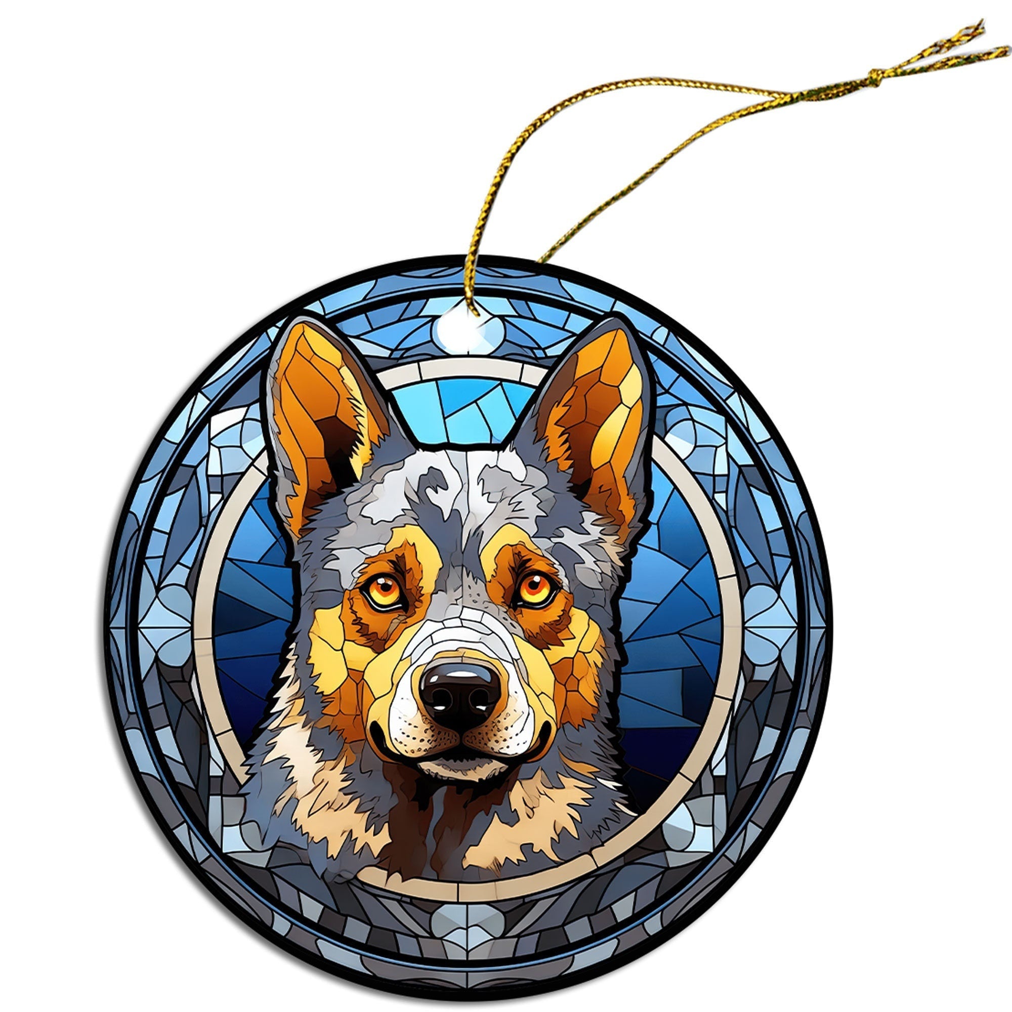 Dog Breed Christmas Ornament Stained Glass Style, "Australian Cattle Dog"