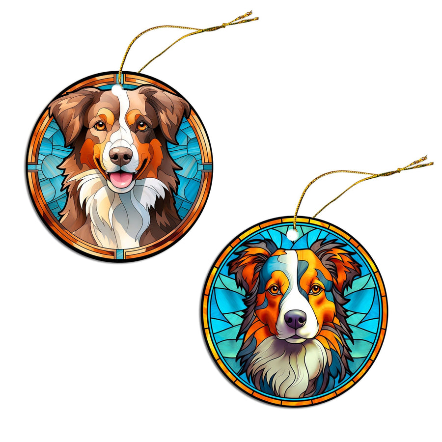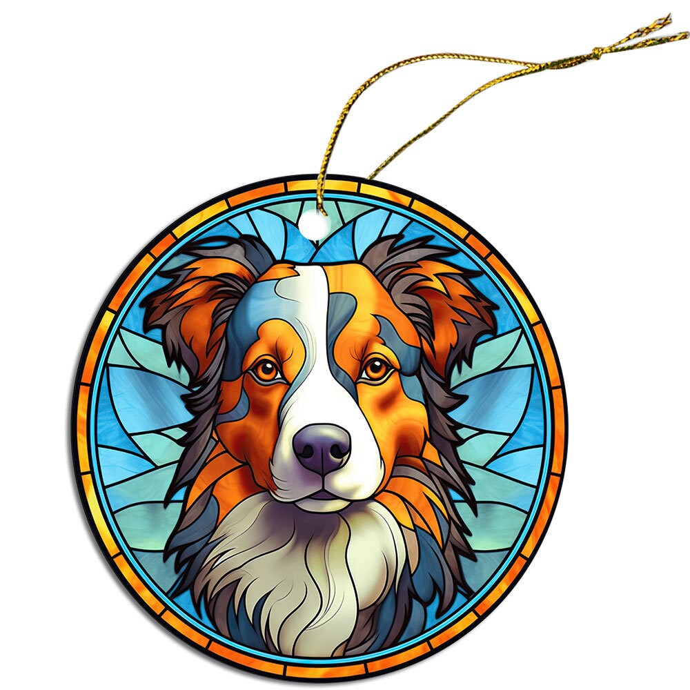 Dog Breed Christmas Ornament Stained Glass Style, "Australian Shepherd"