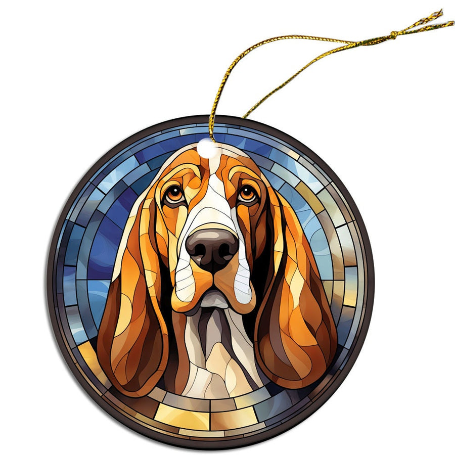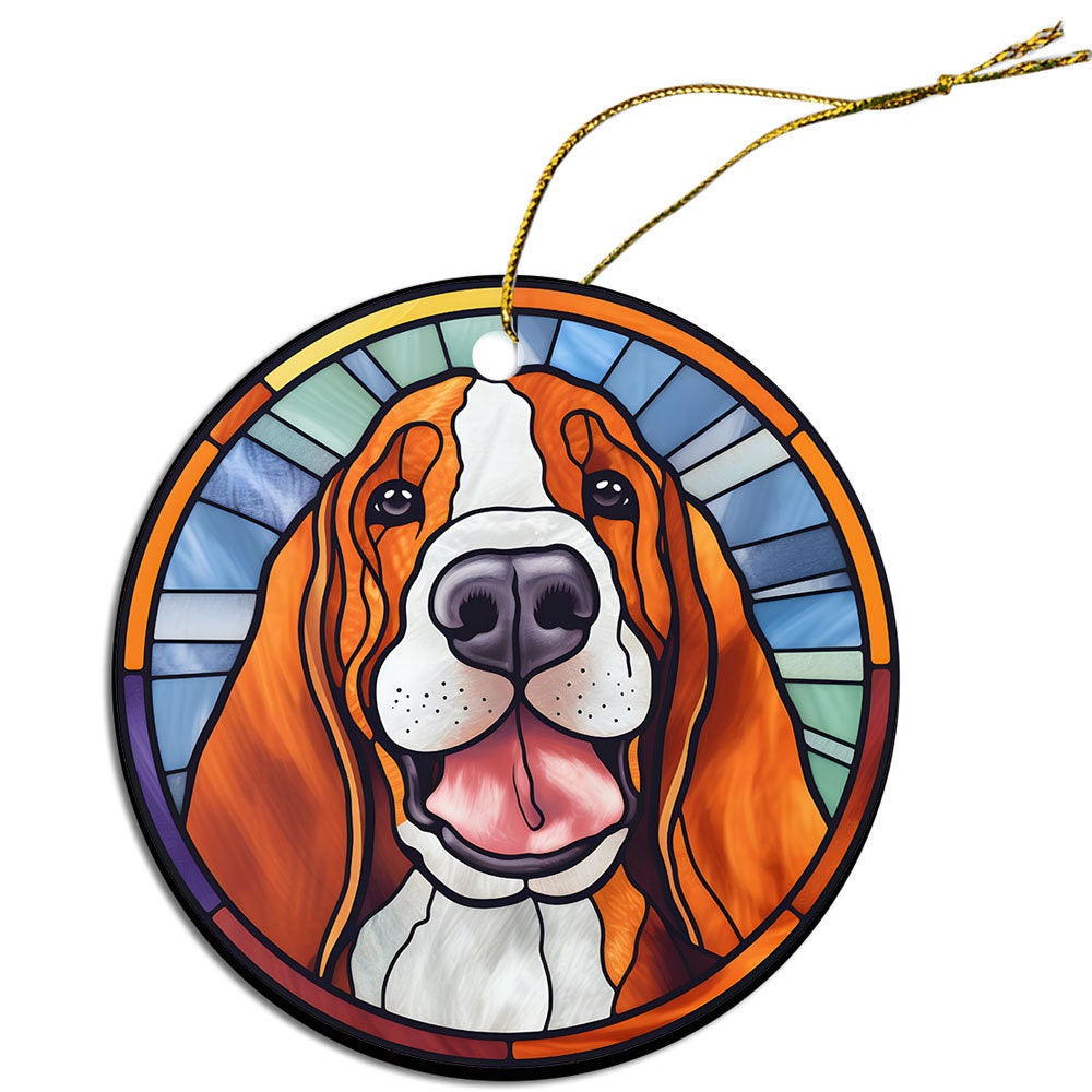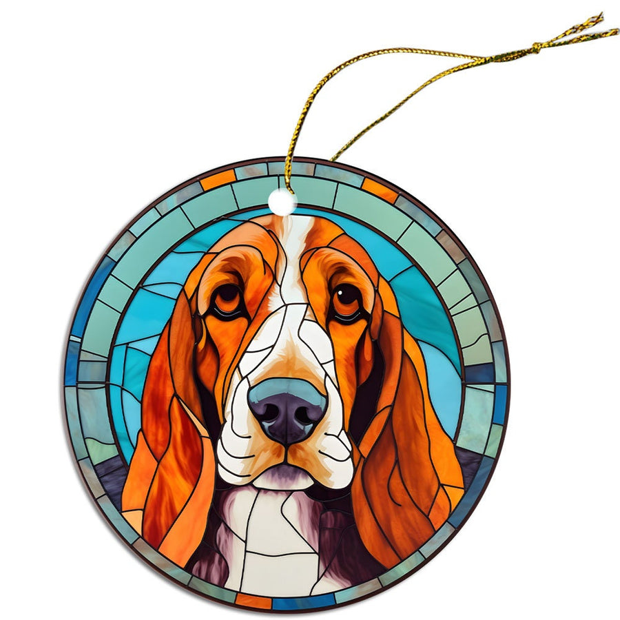Dog Breed Christmas Ornament Stained Glass Style, "Basset Hound"