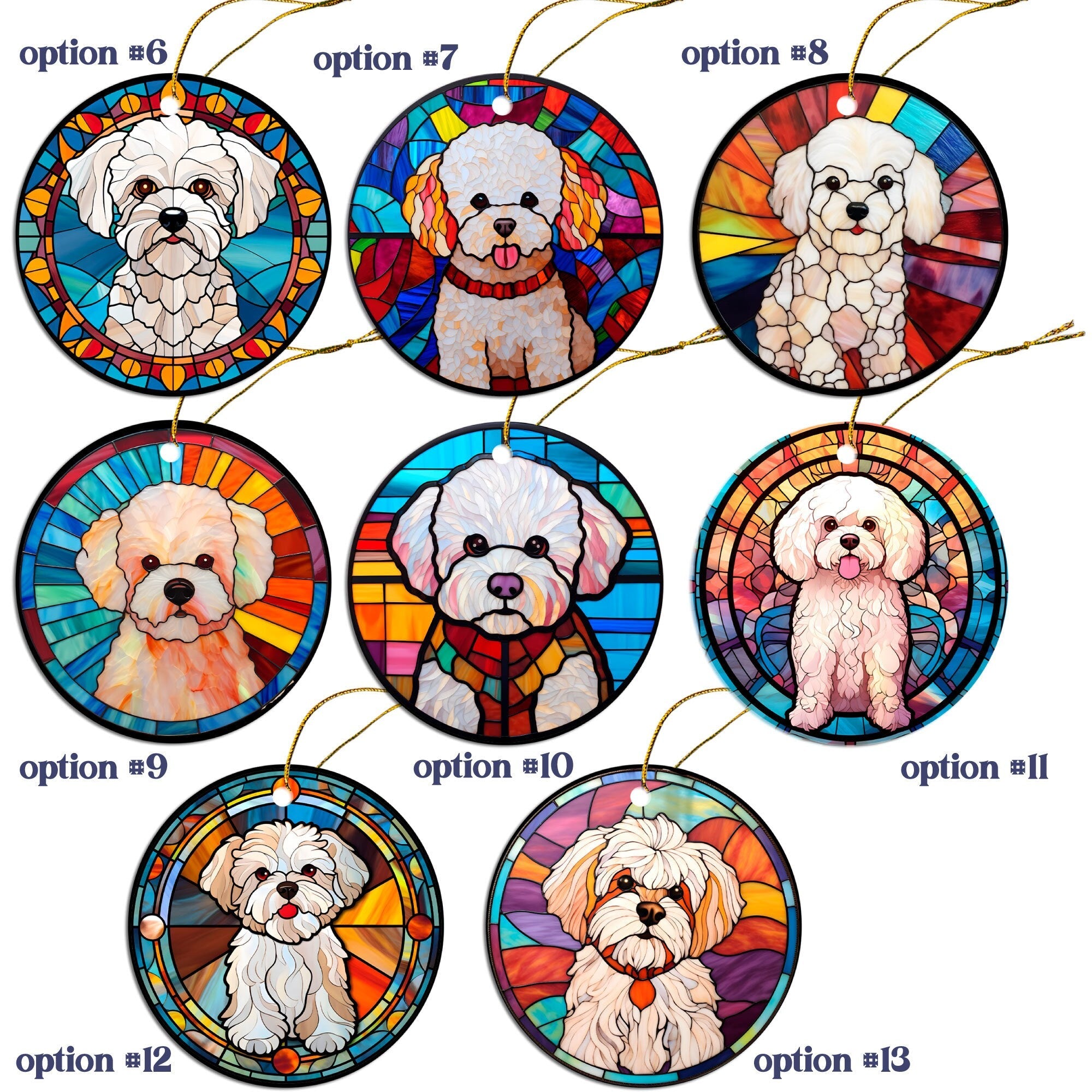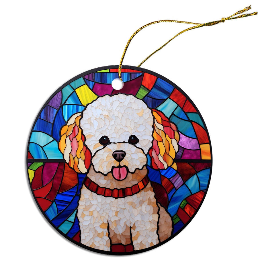 Dog Breed Christmas Ornament Stained Glass Style, "Bichon Frise"