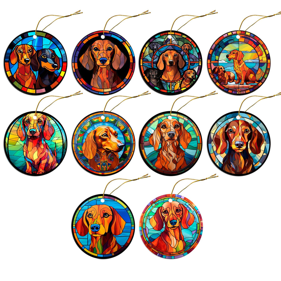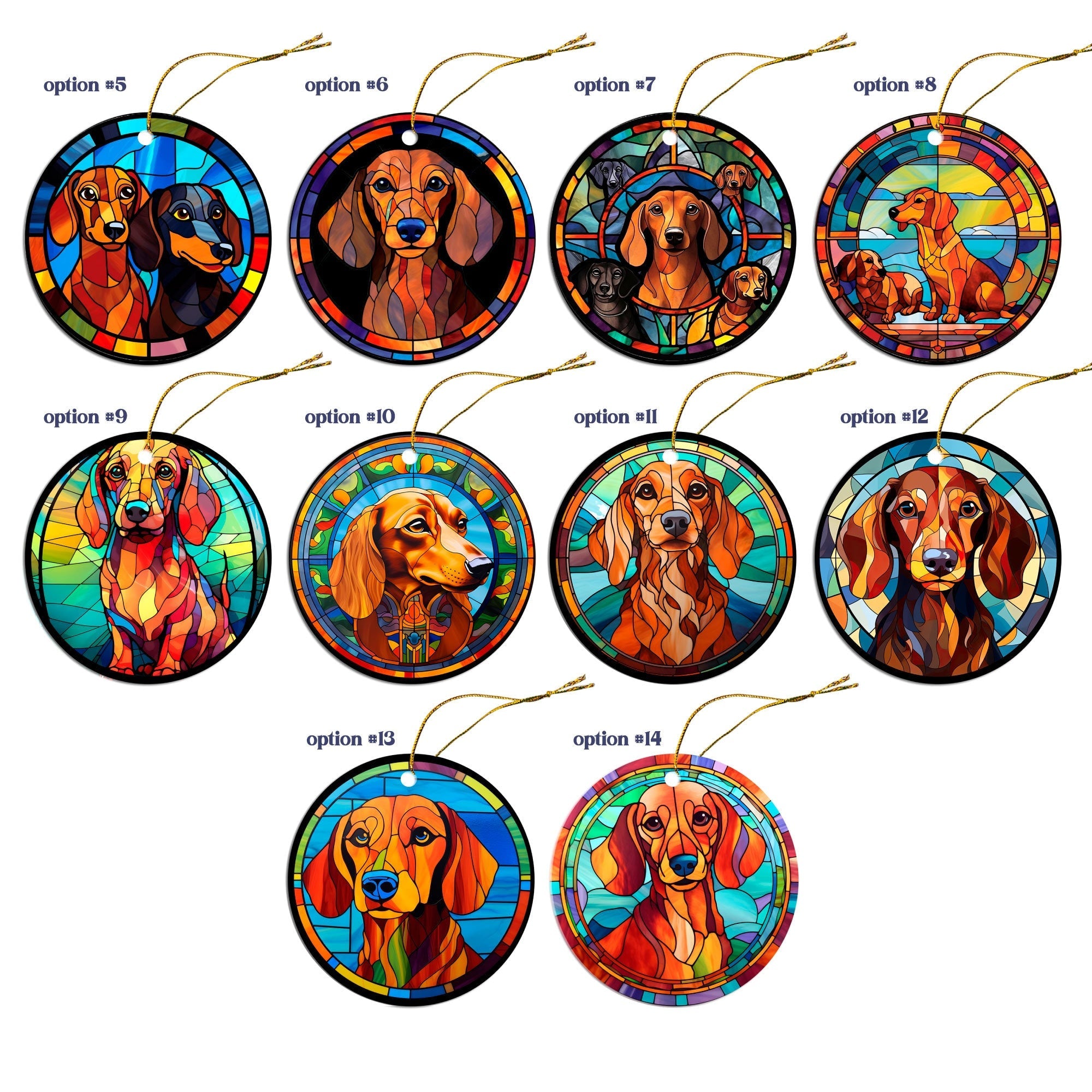 Dog Breed Christmas Ornament Stained Glass Style, "Dachshund"