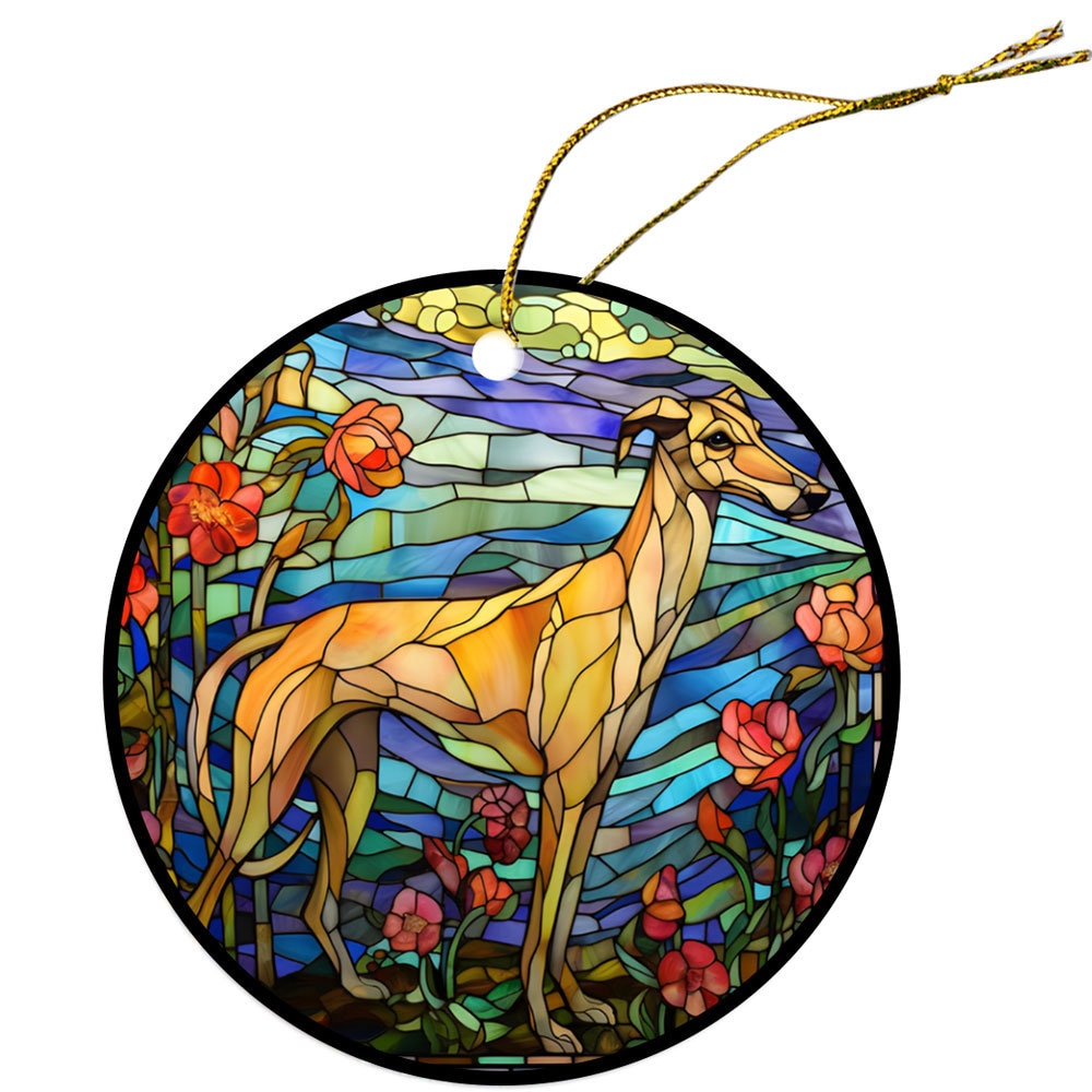 Dog Breed Christmas Ornament Stained Glass Style, "Greyhound"