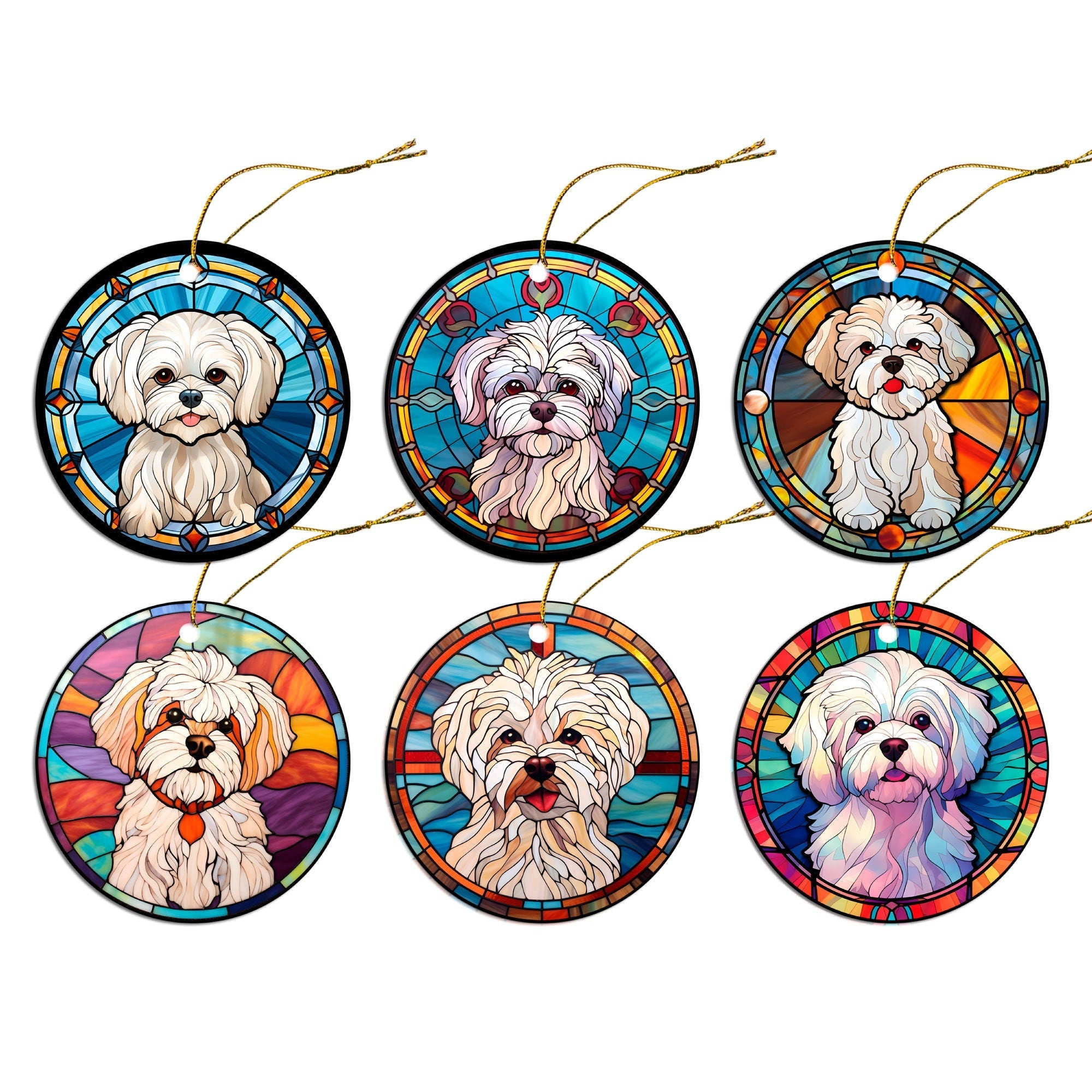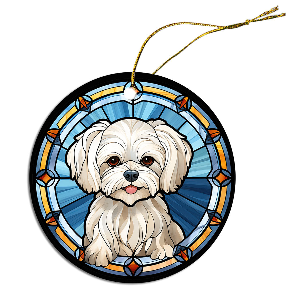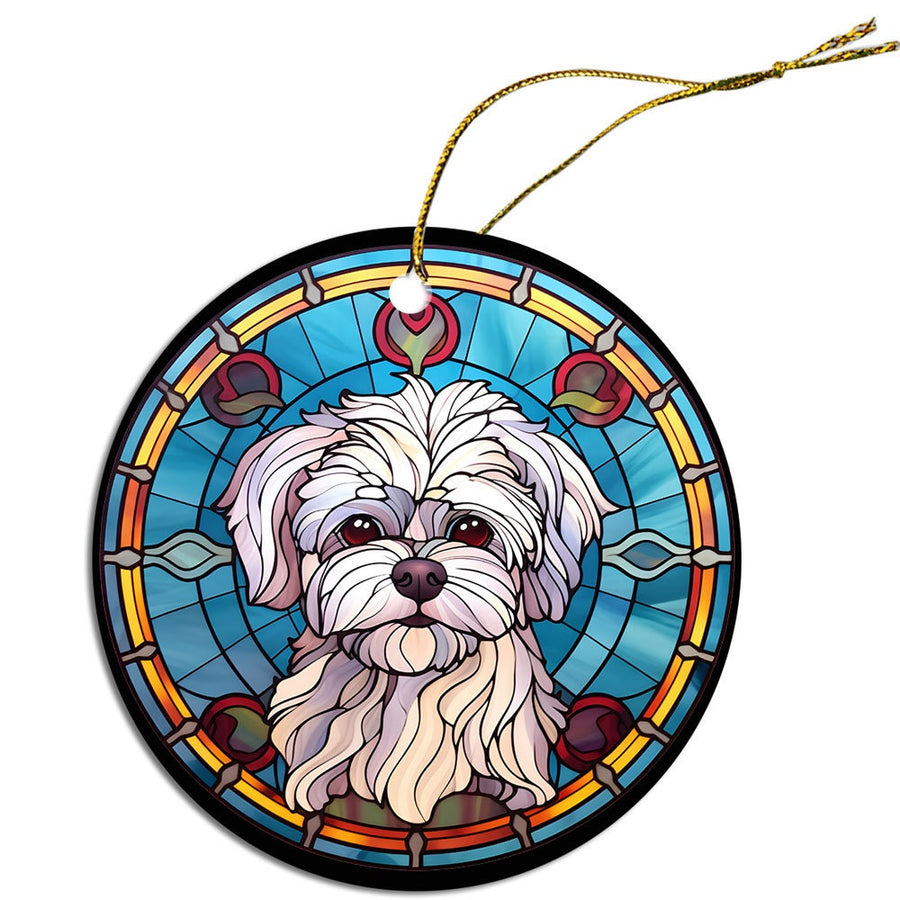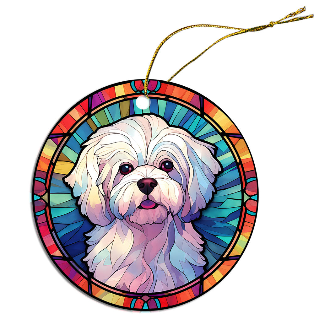 Dog Breed Christmas Ornament Stained Glass Style, "Maltese"