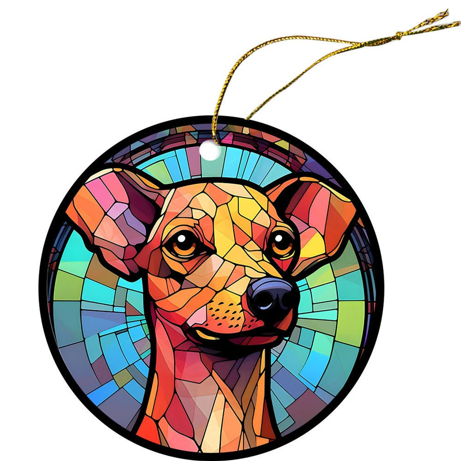 Dog Breed Christmas Ornament Stained Glass Style, "Miniature Pinscher"