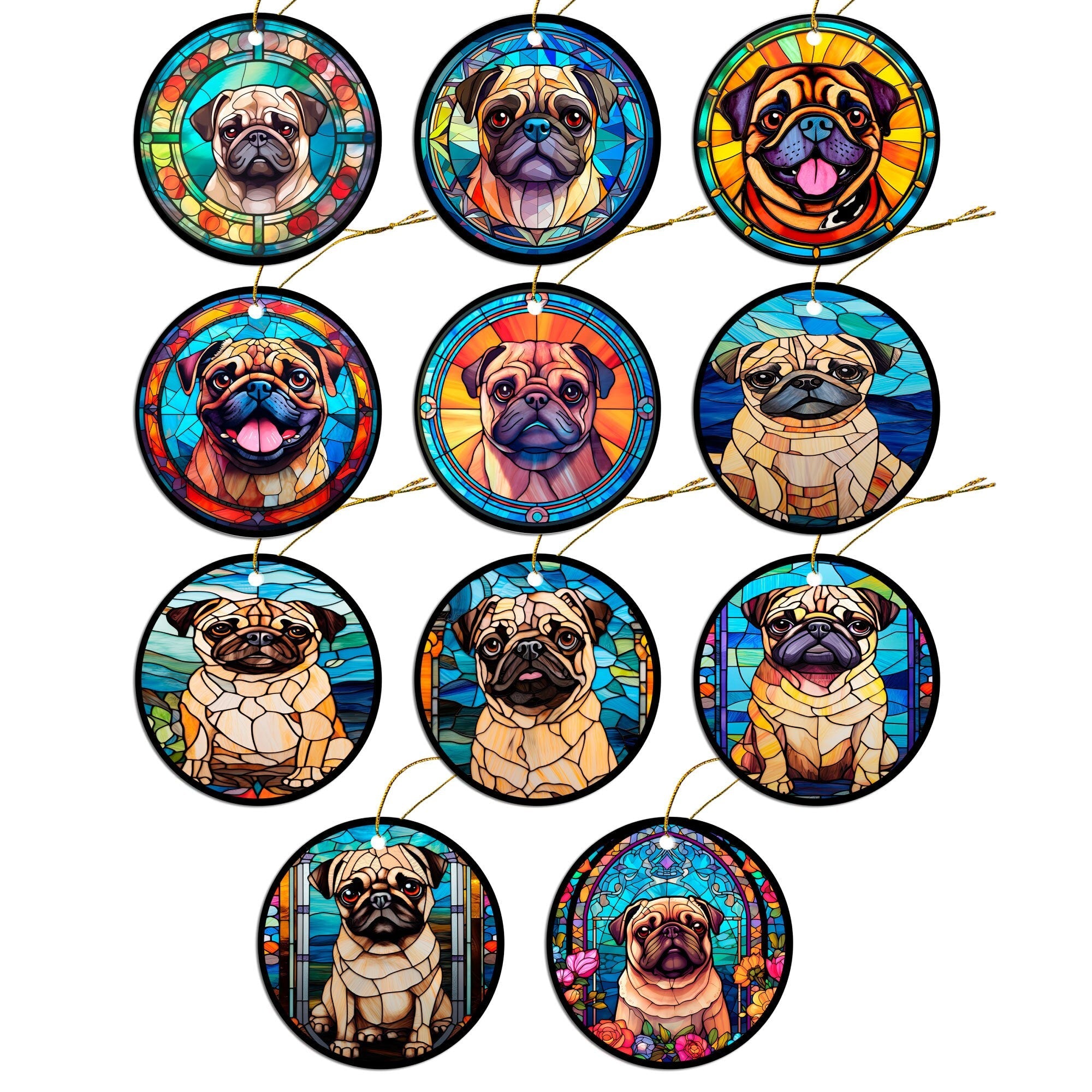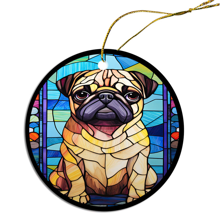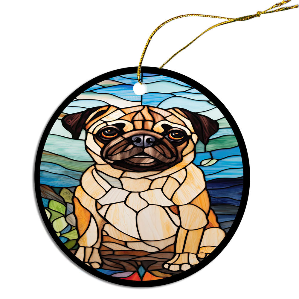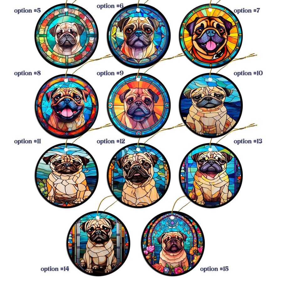 Dog Breed Christmas Ornament Stained Glass Style, "Pug"