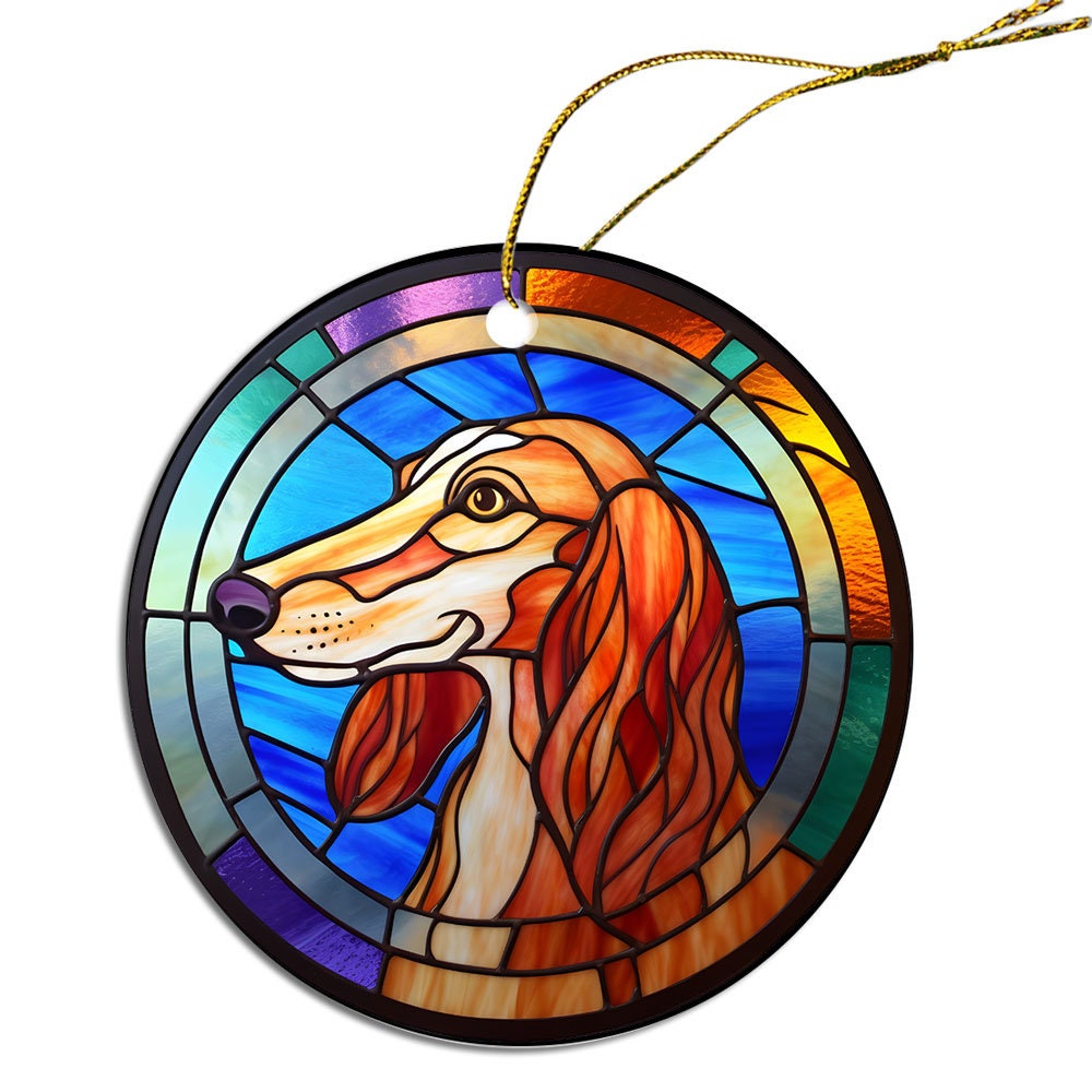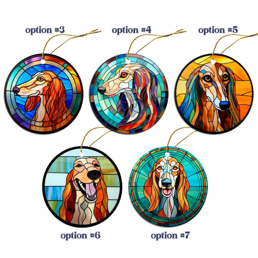 Dog Breed Christmas Ornament Stained Glass Style, "Saluki"