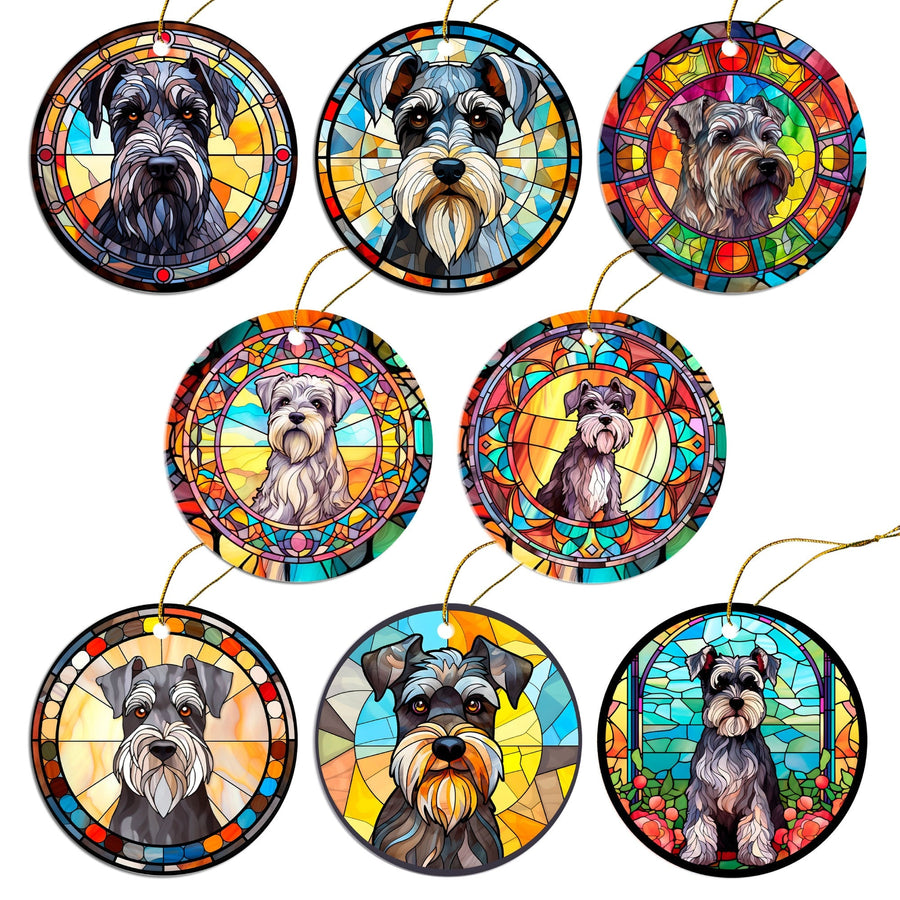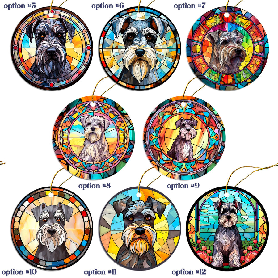 Dog Breed Christmas Ornament Stained Glass Style, "Schnauzer"