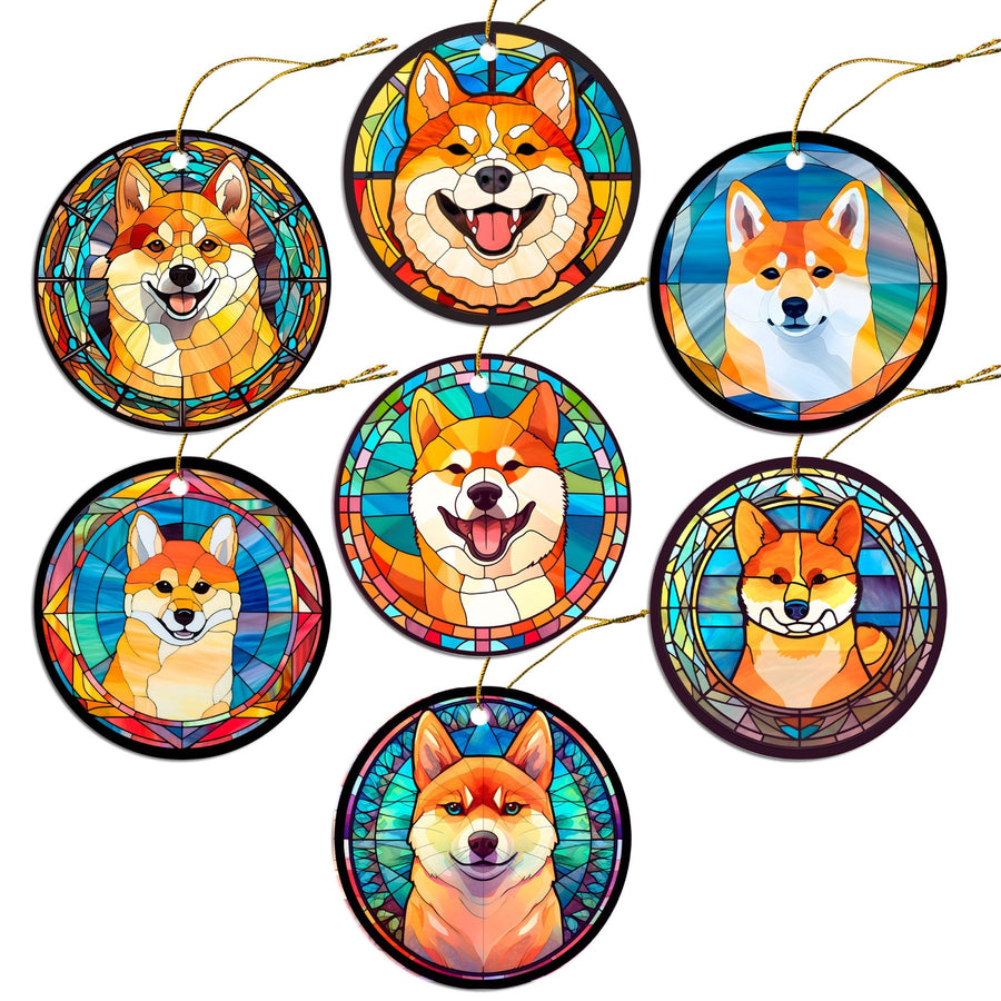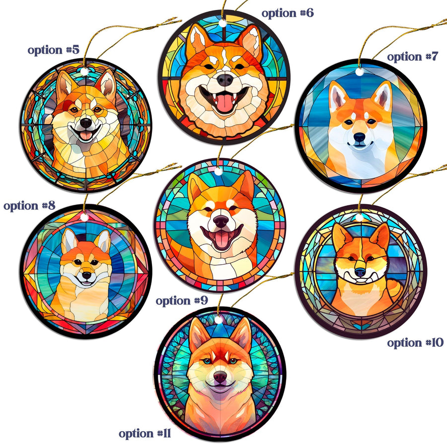 Dog Breed Christmas Ornament Stained Glass Style, "Shiba Inu"