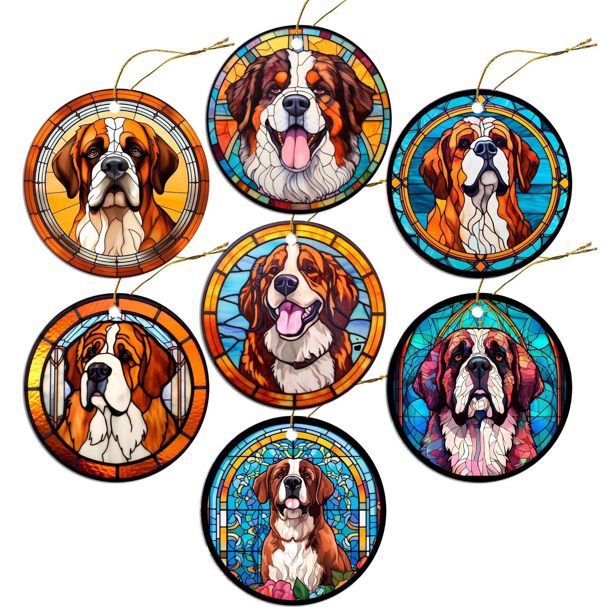 Dog Breed Christmas Ornament Stained Glass Style, "St. Bernard"