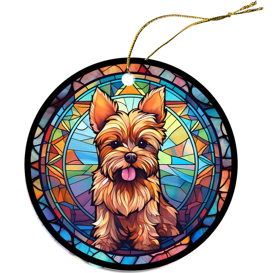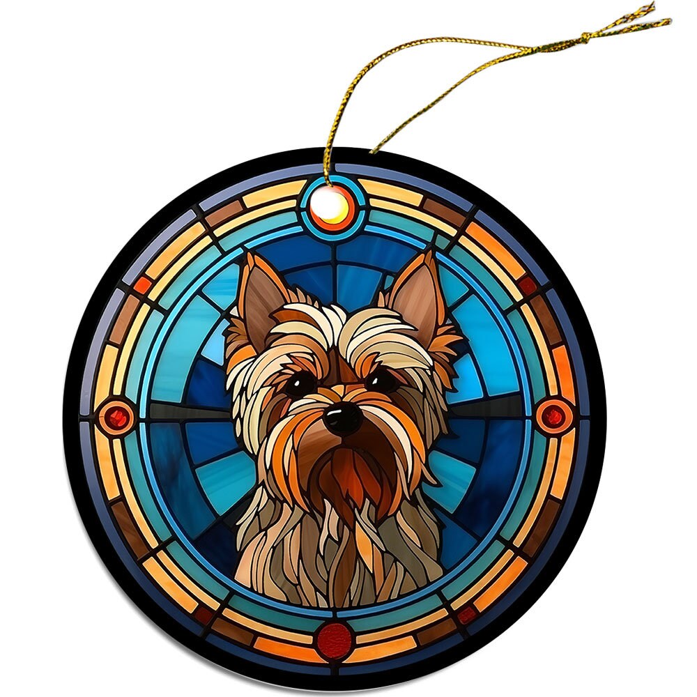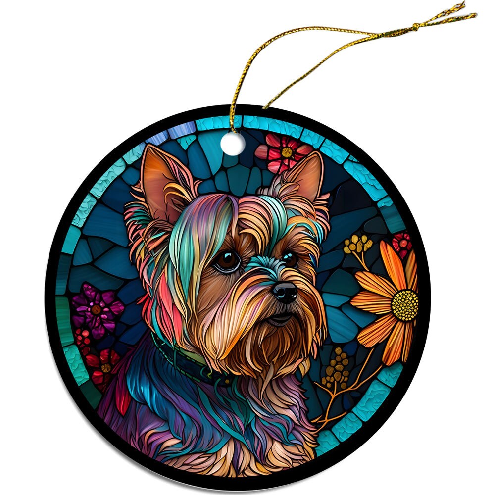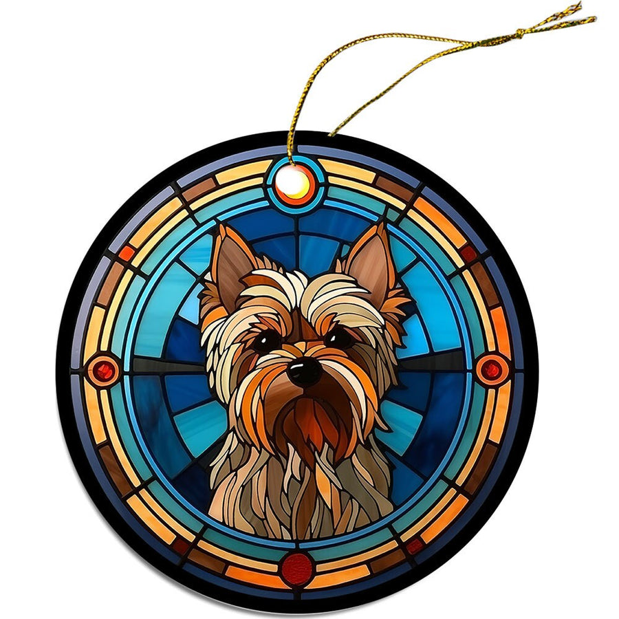 Dog Breed Christmas Ornament Stained Glass Style, "Yorkie"