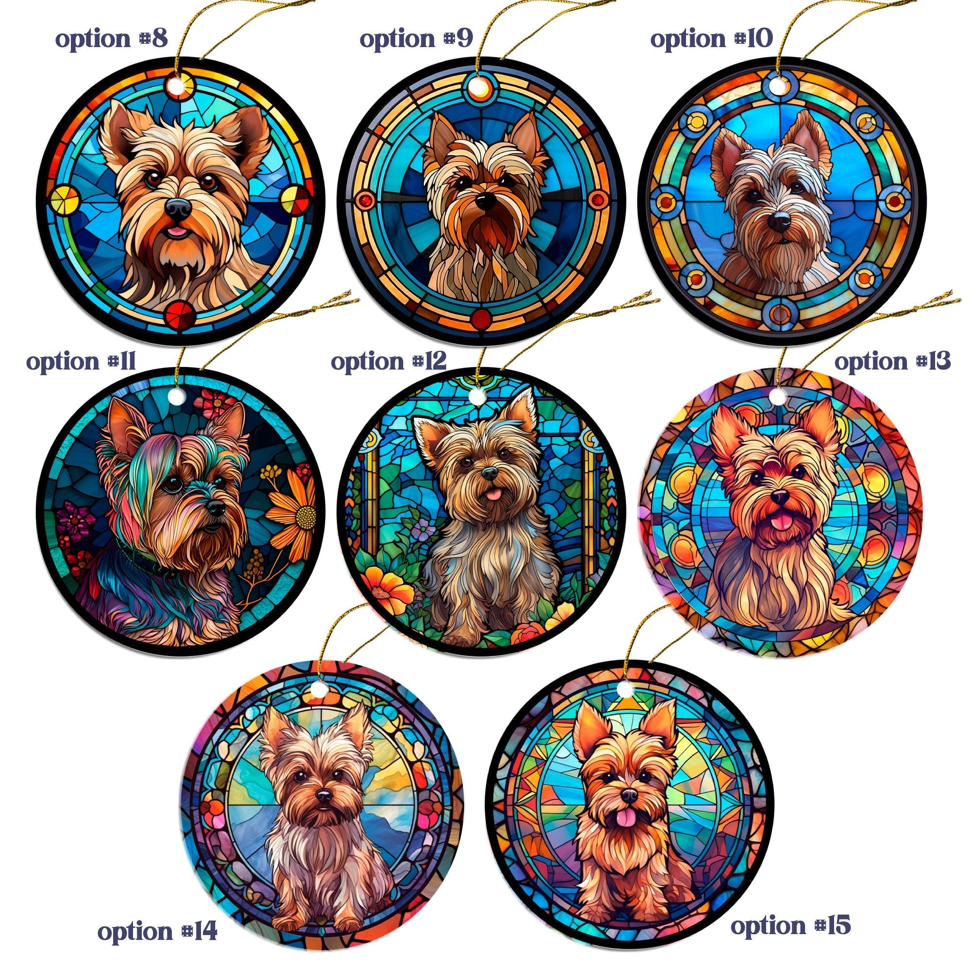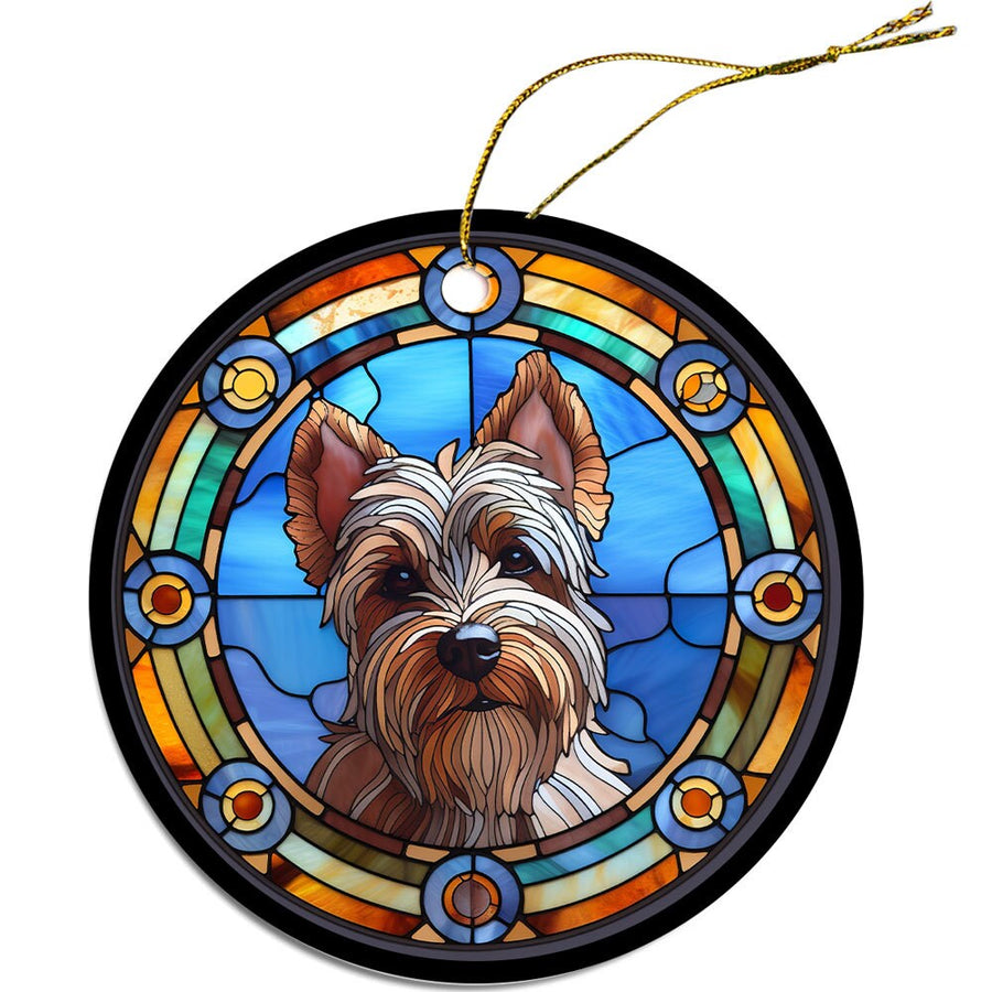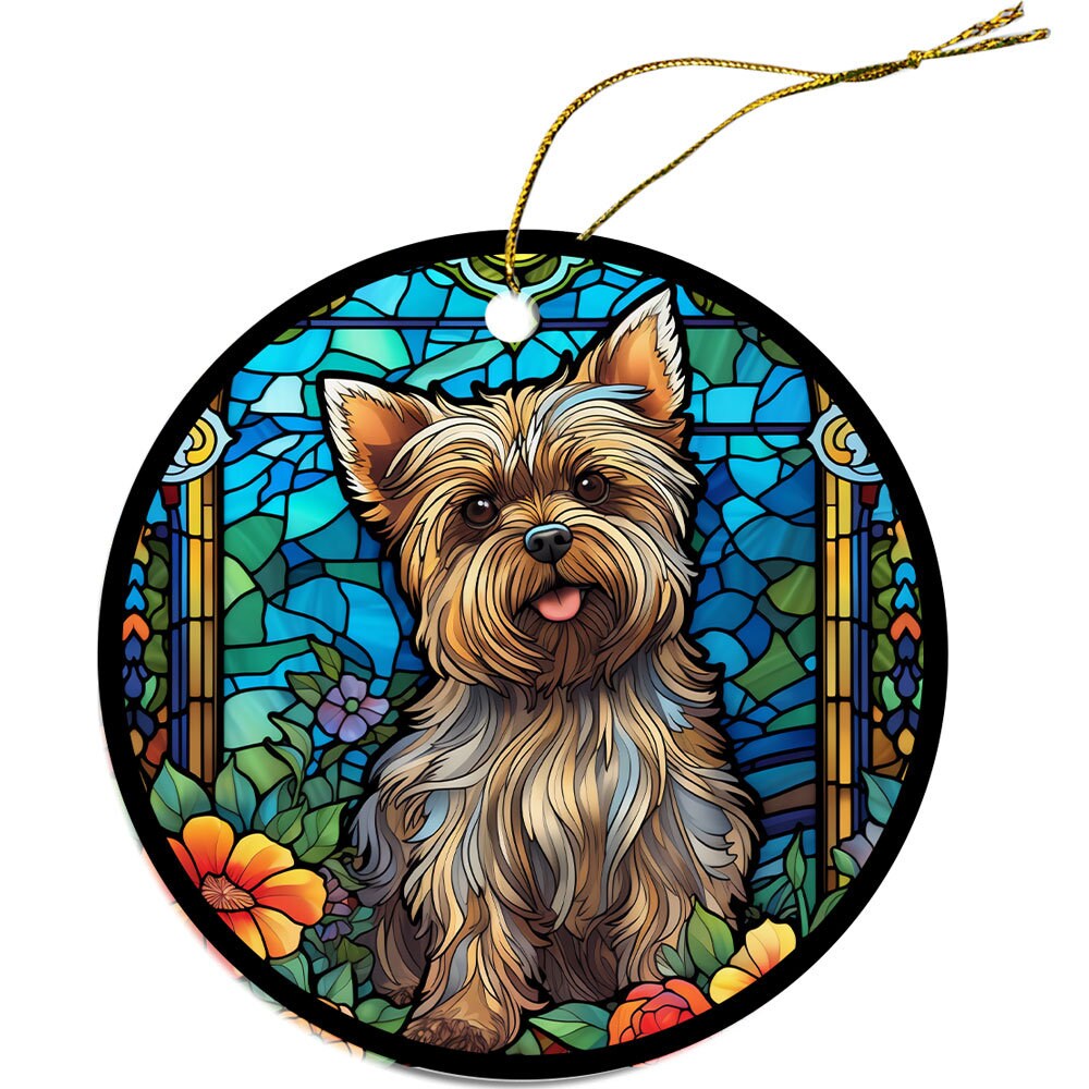 Dog Breed Christmas Ornament Stained Glass Style, "Yorkie"