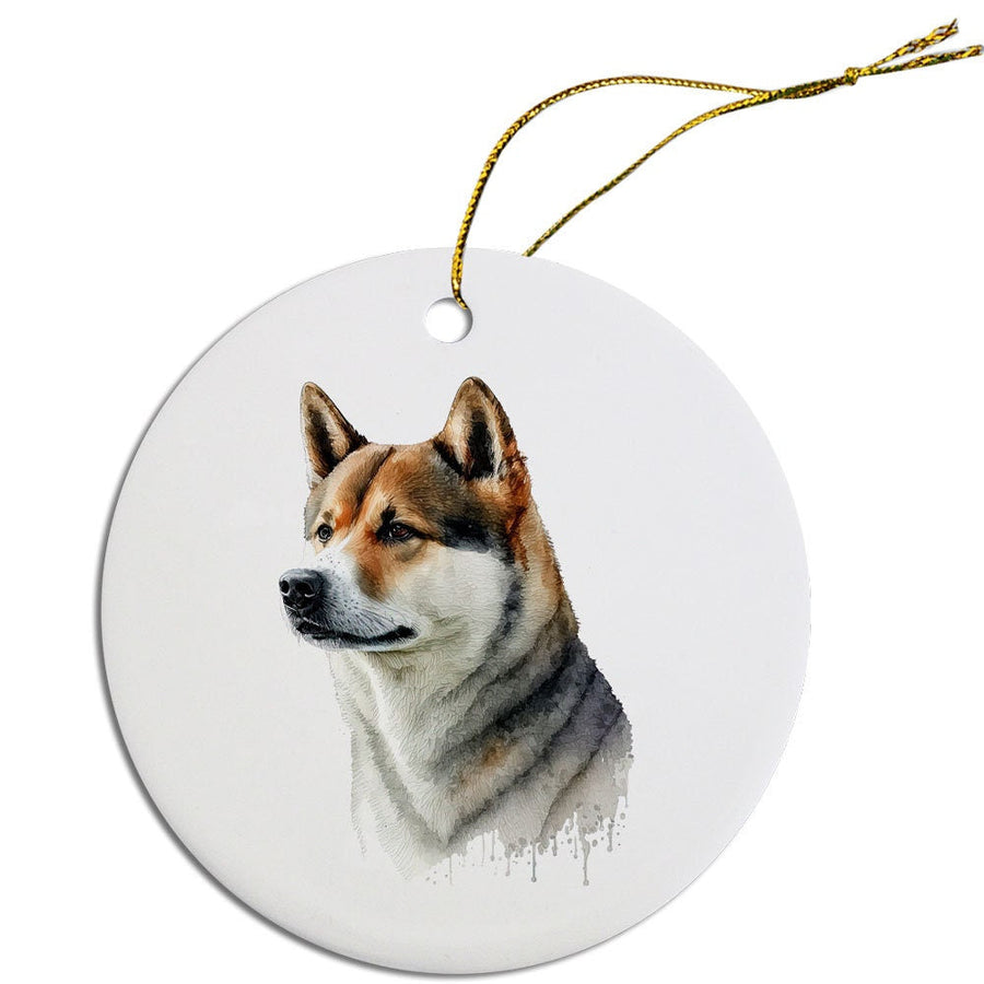 Dog Breed Specific Round Christmas Ornament, "Akita"