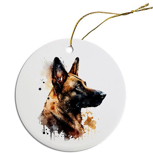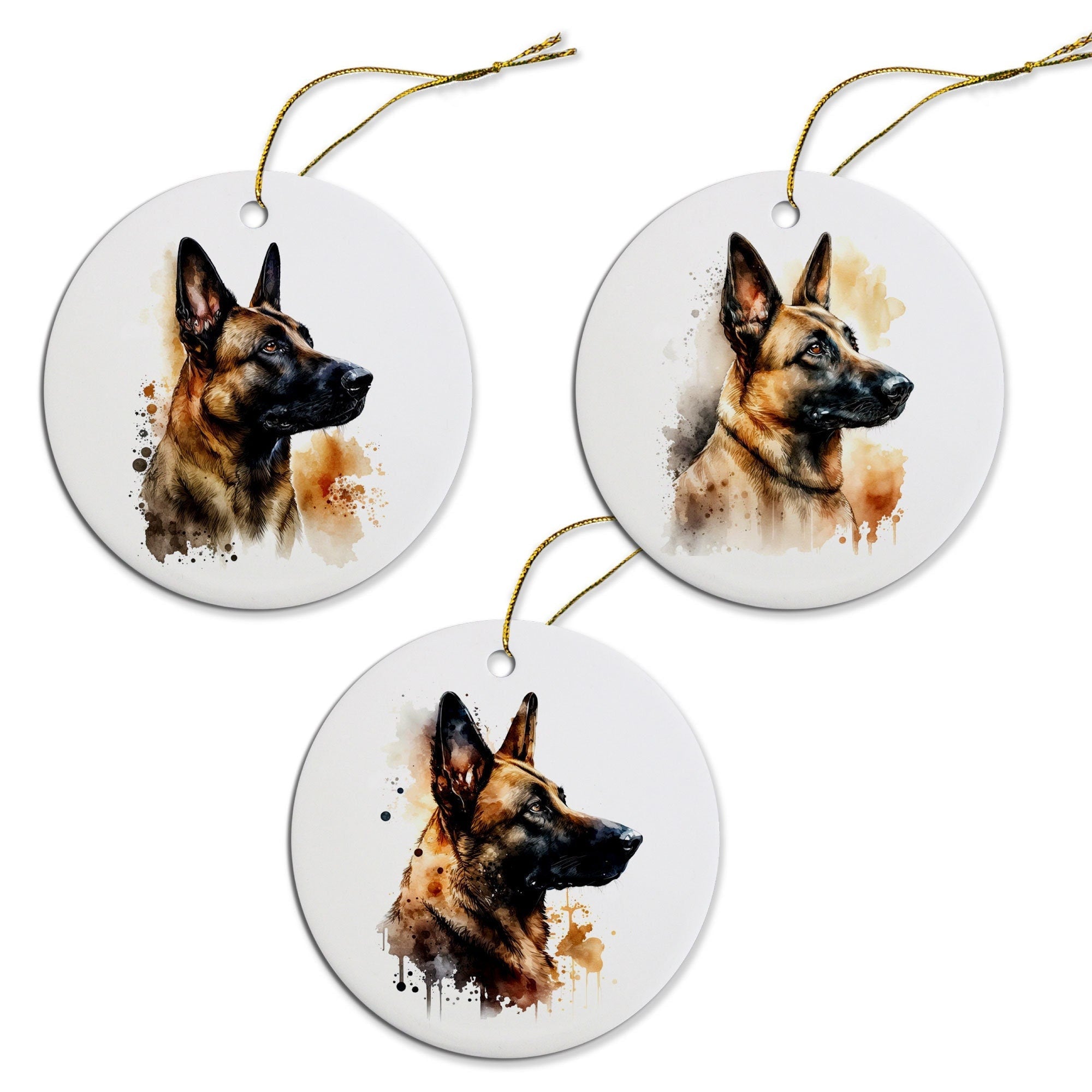 Dog Breed Specific Round Christmas Ornament, "Belgian Malinois"