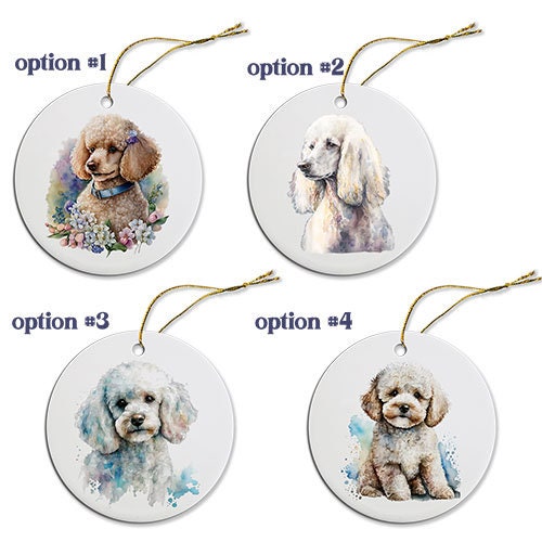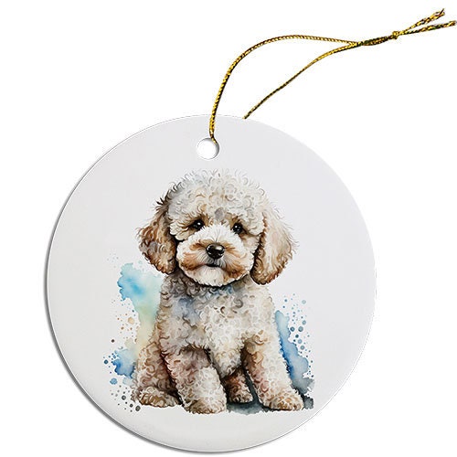 Dog Breed Specific Round Christmas Ornament, "Poodle"