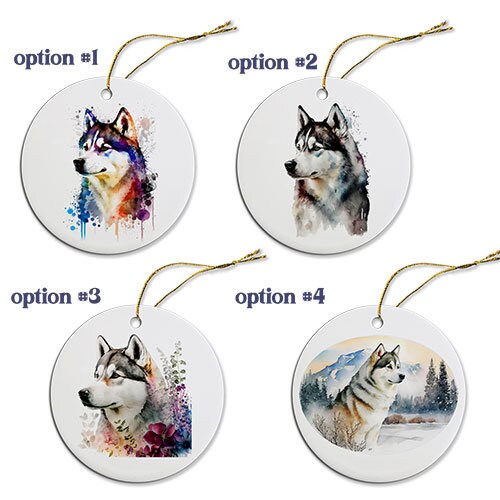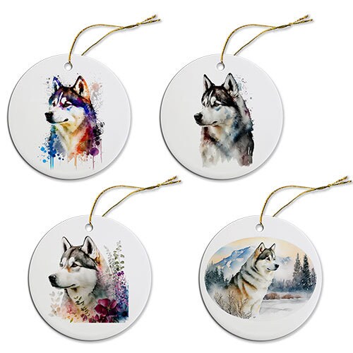 Dog Breed Specific Round Christmas Ornament, "Siberian Husky"