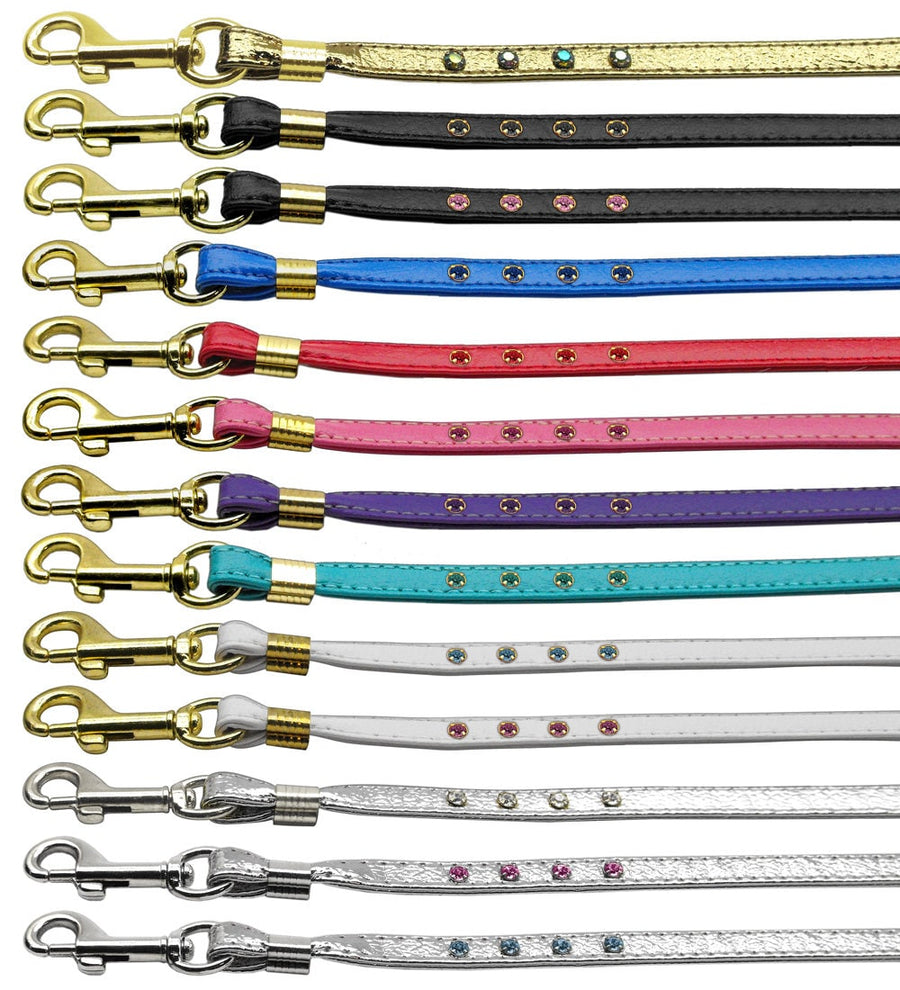 Wonderful leashes made to match our Color Jewel collars! The leashes are ⅜" wide by 4 ft. long, and come adorned with colored crystals.