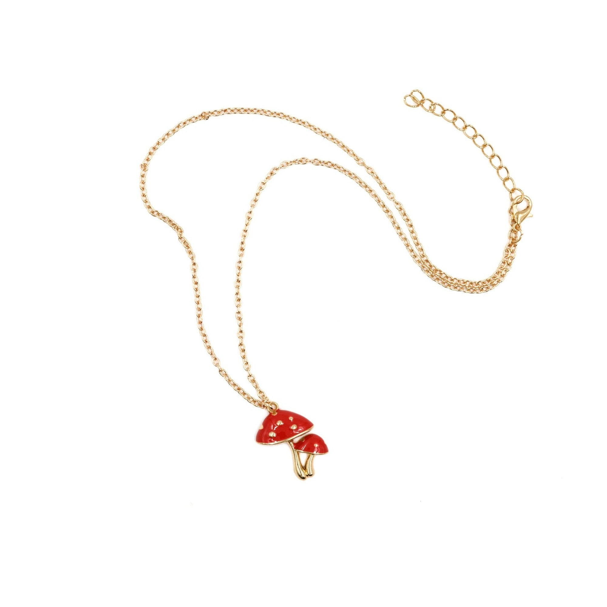 Embrace your inner forest spirit with the adorable Forestcore Toadstool Mushroom Charm Necklace in Gold, featuring cute red mushrooms on a fine chain. This charming piece by Paper & Quartz is perfect for nature lovers who long to connect with woodland creatures and create their own fae altar. Surprise a friend who loves all things whimsical and magical with this Toadstool Mushroom Charm Necklace in Gold, presented in a lovely gift box. Let them immerse themselves in the mystical world of forests and fairytales with this unique and enchanting accessory.
