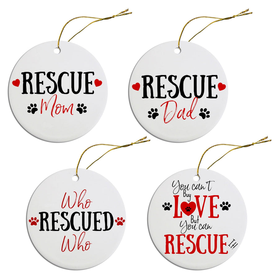 Holiday Fun Christmas Ornaments (Choose from 4 designs: Rescue Mom, Rescue Dad, Who Rescued Who?, You Can't Buy Love, But You Can Rescue It)