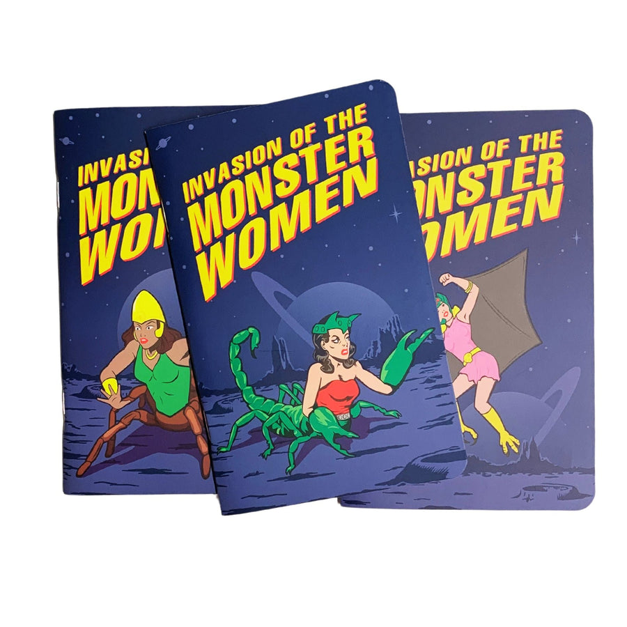 Invasion of the Monster Women Mini Notebooks - Set of 3 | Retro Comic Book Style Illustrations