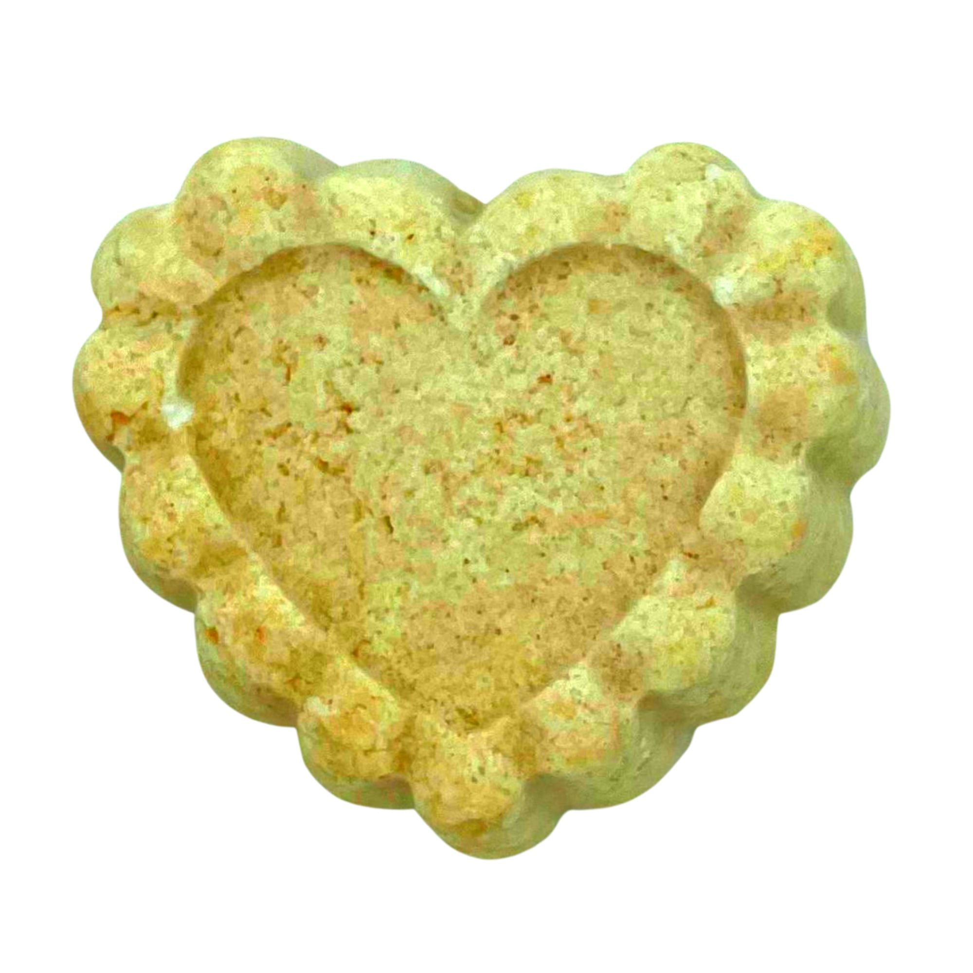 Our Lemon Rose Bubble Bomb creates the perfectly scented bubble bath for one or two! Made in a convenient heart-shaped puck, they are perfect for romantic getaways without a possible mess all over your luggage. Just put half or all of the heart under hot running water at water level to experience an initial fizzy bath bomb that turns into a luxurious bubble bath! Each one is handmade with moisturizing shea and mango butters to soften and pamper the skin, and 100 percent pure essential oils that scentually perfumes the skin. Like all of our bath and body products, they are completely natural, use only sustainable ingredients, and are gluten-free. These are also vegan. The scent is a tangy lemon floral.