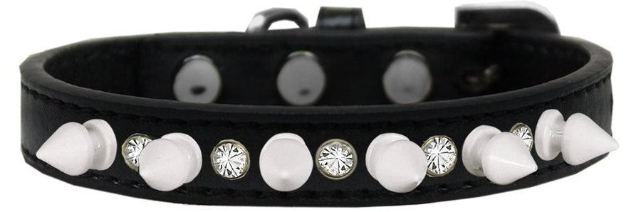 Pet and Dog Spike Collar, "Clear Crystals & White Spikes”