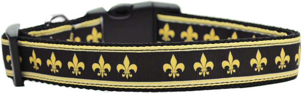 Pet Dog and Cat Nylon Collar or Leash, "Black & Gold Fleur De Lis"