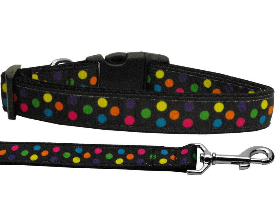 Pet Dog & Cat Nylon Collar or Leash, "Black Multi Dot"