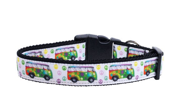 Pet Dog & Cat Nylon Collar or Leash, "Peace Bus"