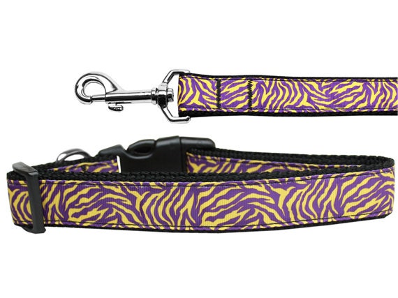 Pet Dog & Cat Nylon Collar or Leash, "Purple and Yellow Tiger Stripes"