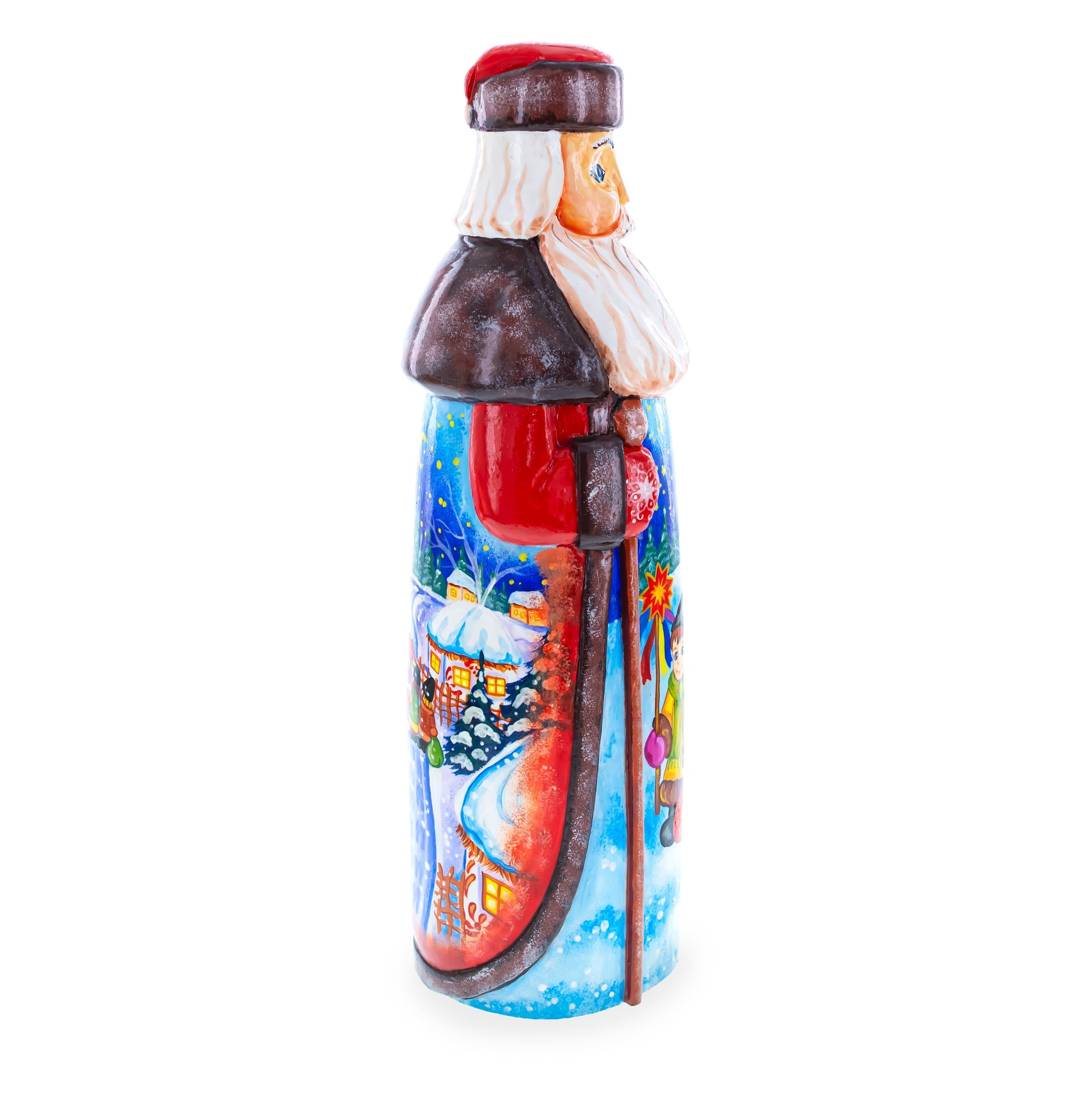 Each figurine is carved entirely from a single piece of wood by a skilled artist in the Mountains of Ukraine. After being shaped, the Santa is passed onto another artist and given life by being carefully painted with vivid details. Each piece is then varnished and signed by the artist on the bottom. This time consuming process makes each figurine unique- no two could ever be the same!