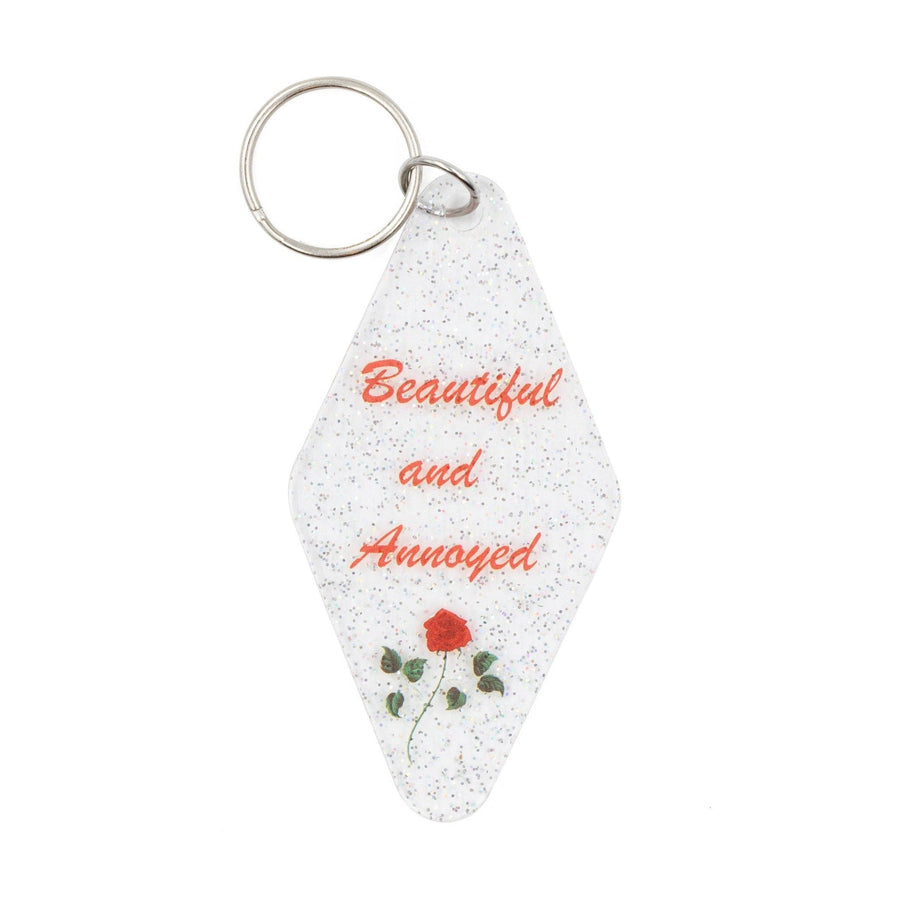 Beautiful and Annoyed Motel Style Key Tag Keychain in Transparent Glitter