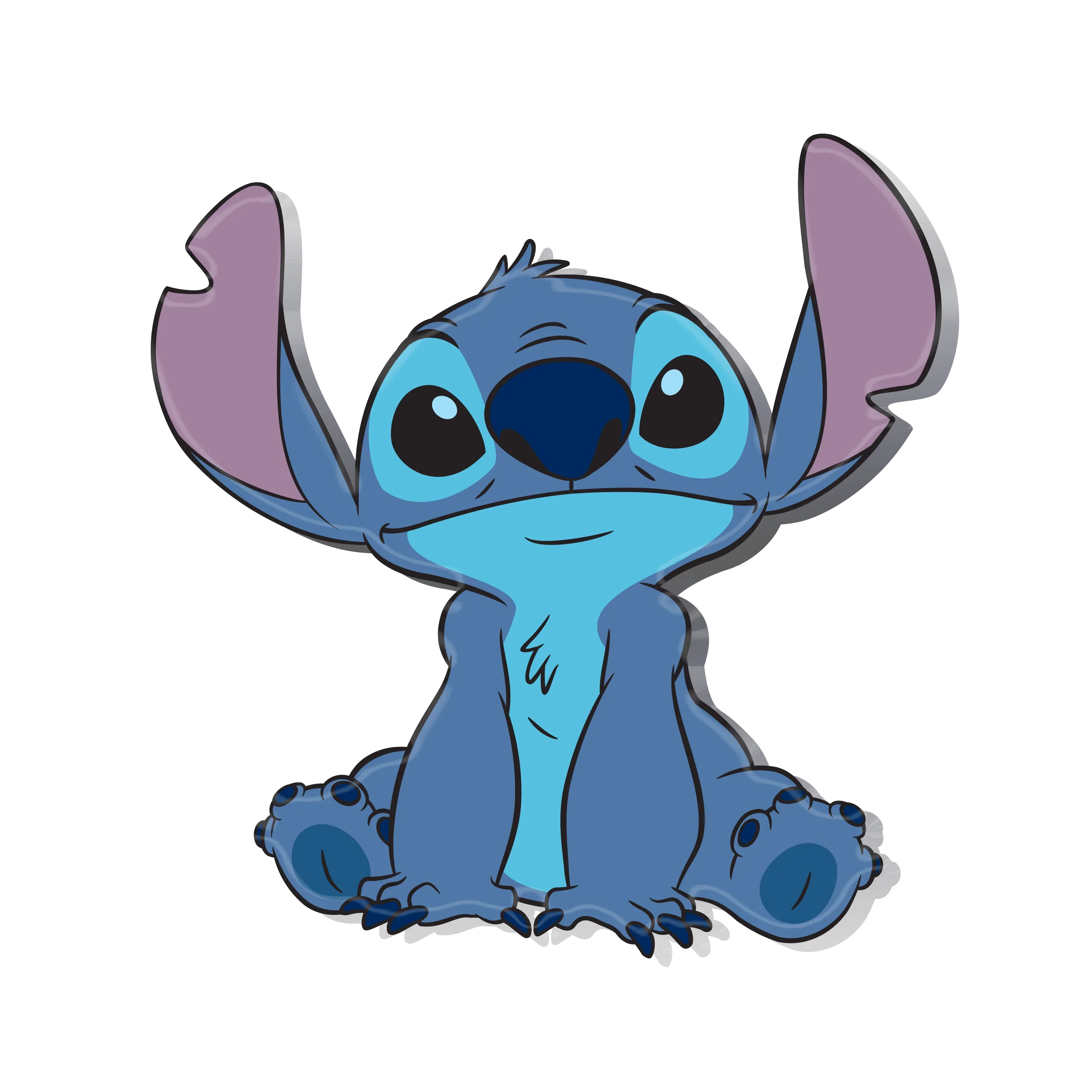 - Design: Stitch in a sitting pose, with a colorful box-style frame