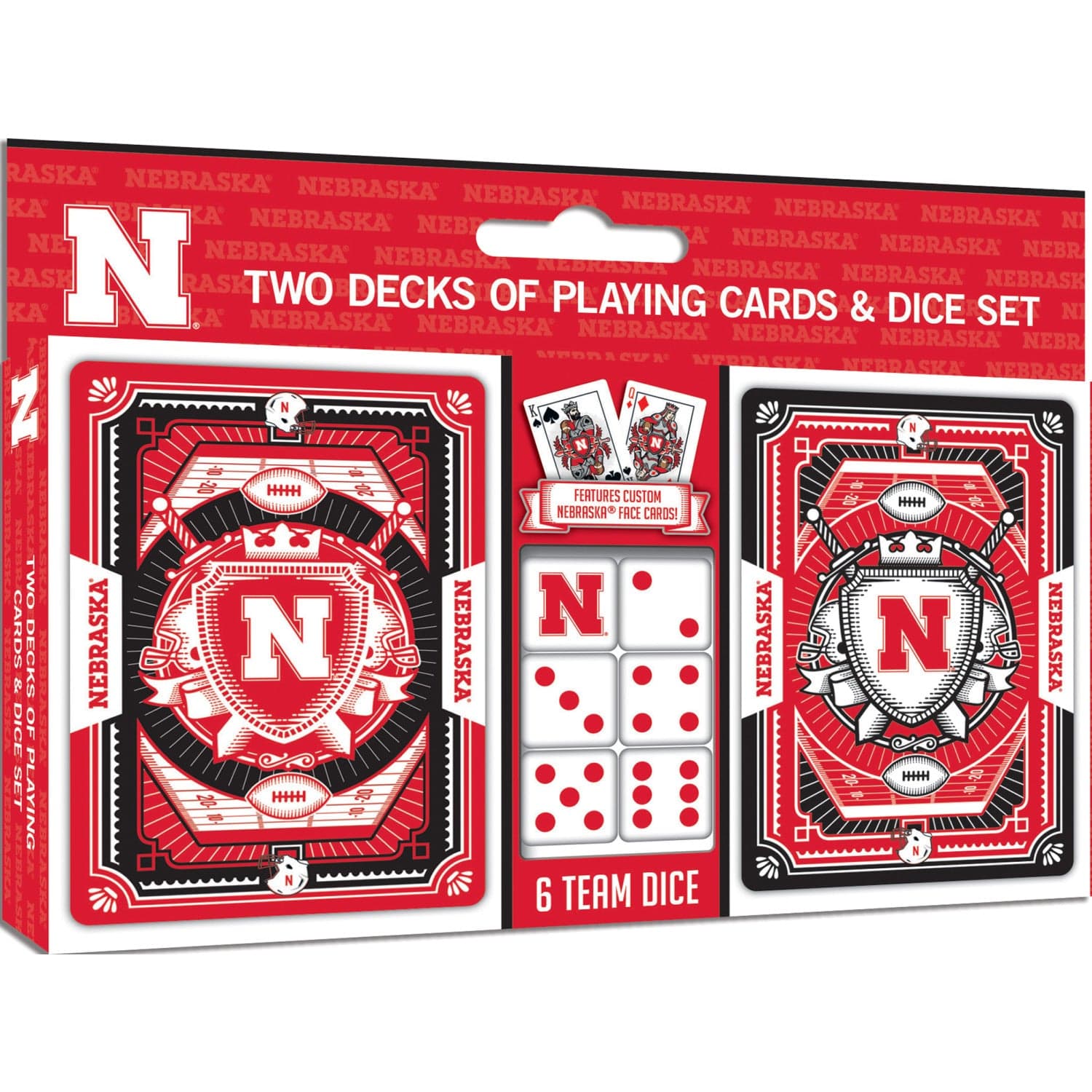 Who says you can't bring the casino to your next game night? These Officially Licensed NCAA Nebraska Cornhuskers 2-pack playing card and dice sets are perfect for any game night. The high-quality Casino Style Cardstock playing cards are perfect for any fan of the Nebraska Cornhuskers. The deck features a unique team design and comes with a 6-piece 16mm D6 gaming dice set. Whether you're playing some poker or trying to beat the dealer at blackjack, these cards will help you do it in style. So roll the dice and get ready to bet big, because, with this set, you're going to win big. Go Team!