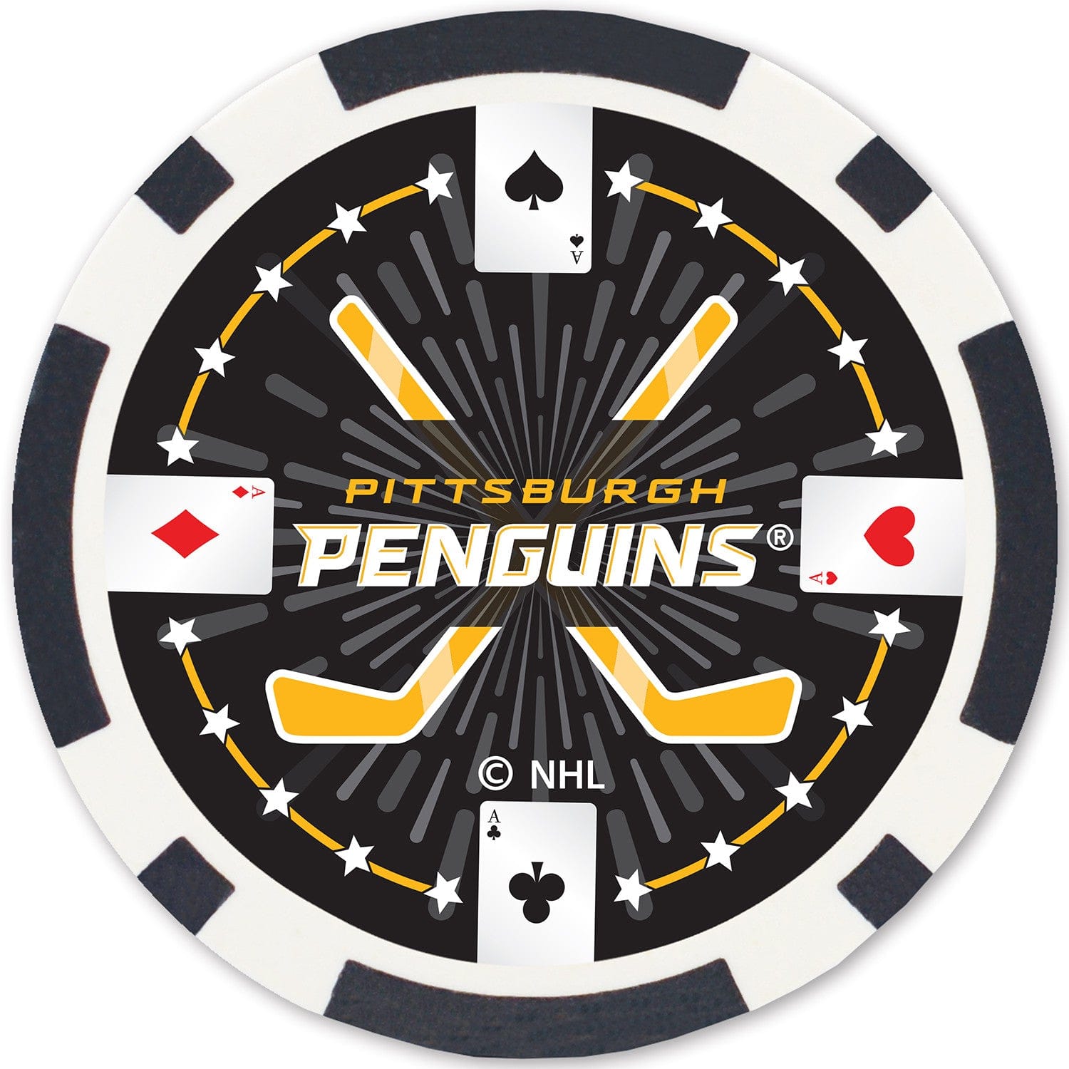Bring the excitement of the casino and your favorite NHL team to your next poker night with this officially licensed Pittsburgh Penguins poker chips set. Featuring 100 high-quality, weighted 11.5-gram chips in standard casino colors, each chip is designed with authentic team graphics, making it perfect for fans and collectors. The included black poker chip holder tray keeps your chips organized and ready for action, holding five rows of 20 chips for easy storage and quick setup. Ideal for Texas Hold’em, blackjack, or any poker game set, this compact mini poker set is great for home games, travel, or gifting to hockey enthusiasts. The durable construction ensures long-lasting play, while the custom poker chip designs add a unique touch to your collection. With a total weight of 2.63 pounds and dimensions of 8.5 x 3.27 x 2.25 inches, this small poker set is easy to store and transport. Whether you’re hosting a game night or looking for a unique sports fan gift, this casino chips set delivers professional quality and team spirit in one package.