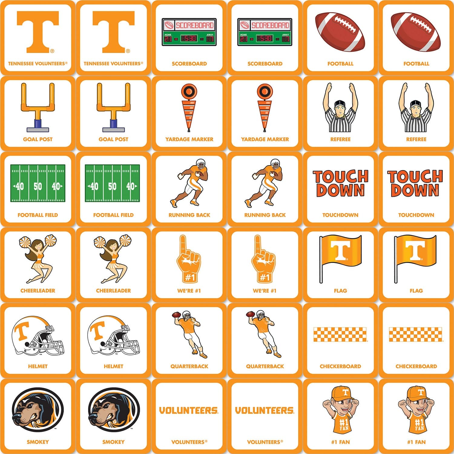 Bring the excitement of college sports home with this officially licensed NCAA matching game featuring the Tennessee Volunteers. Designed for kids, teens, and families, this matching game sports set includes 18 pairs of unique University of Tennessee symbols, making it a fun and educational card memory matching game sports fans will love. Perfect for ages 3 and up, it’s an ideal toddler matching game that helps develop memory, concentration, and recognition skills. Crafted from durable cardboard, this Tennessee Volunteers game is sized for little hands and is a great addition to Tennessee Volunteers toys collections or as a complement to toddler Tennessee Vols apparel, youth Tennessee Vols shirt, or baby Tennessee Vols apparel. The compact design (6.5 x 5.5 x 2.25 inches) makes it easy to take on the go, whether for family game night or travel. As a trusted American puzzle and game company, MasterPieces ensures quality and satisfaction with every product. This NCAA matching game is a must-have for fans looking for university Tennessee merchandise or matching games for 5 yr old, making it a thoughtful gift for any young sports enthusiast. No batteries required.