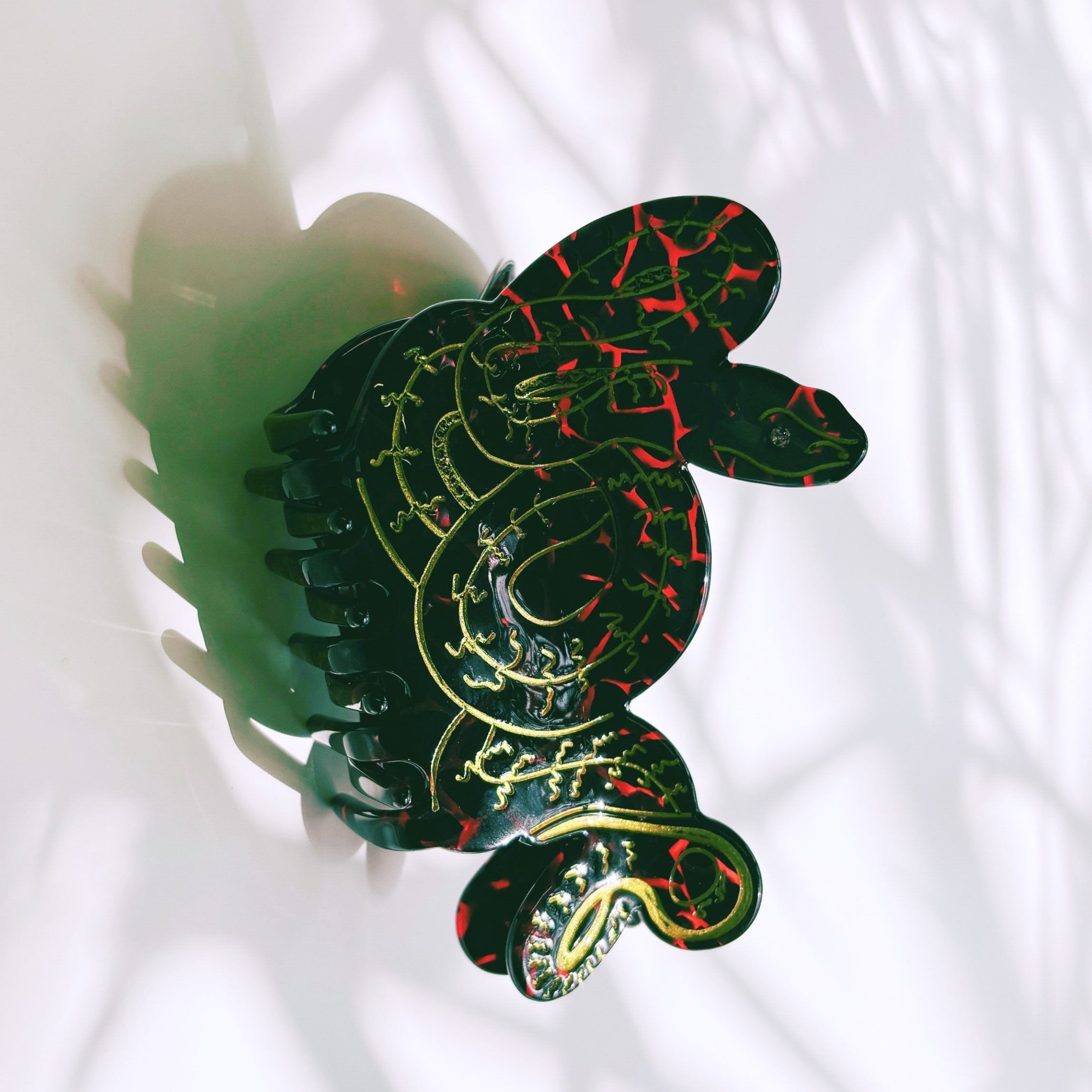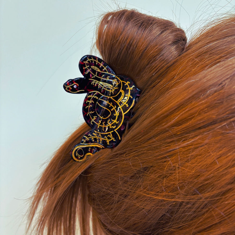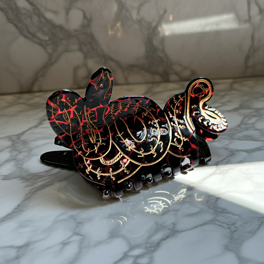 Add a bit of bite to your hair game with this striking Coiled Snake Claw Clip in rich brown, gold, and red. Designed to wind through your strands like a serpent on the prowl, this bold accessory brings a fierce yet elegant edge to any look. Whether you’re channeling mythical vibes or just want to keep your hair stylishly tamed, this claw delivers both form and function