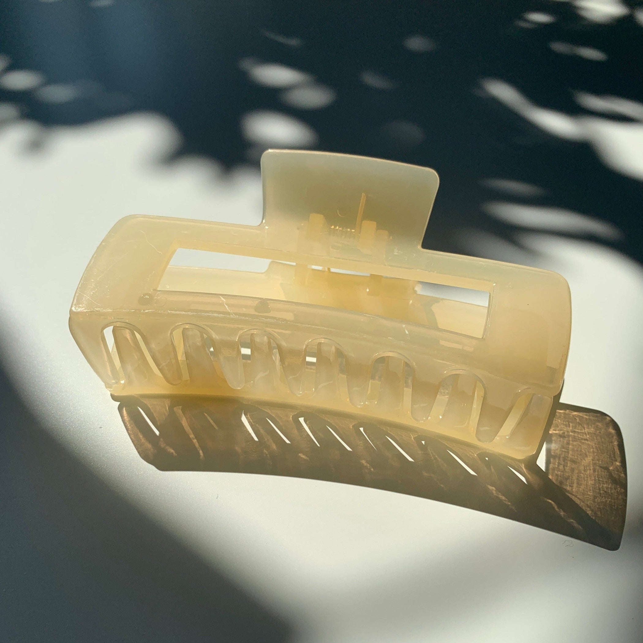 This claw shape is a classic for a reason – it beautifully holds hair securely for a full day of work or fun.