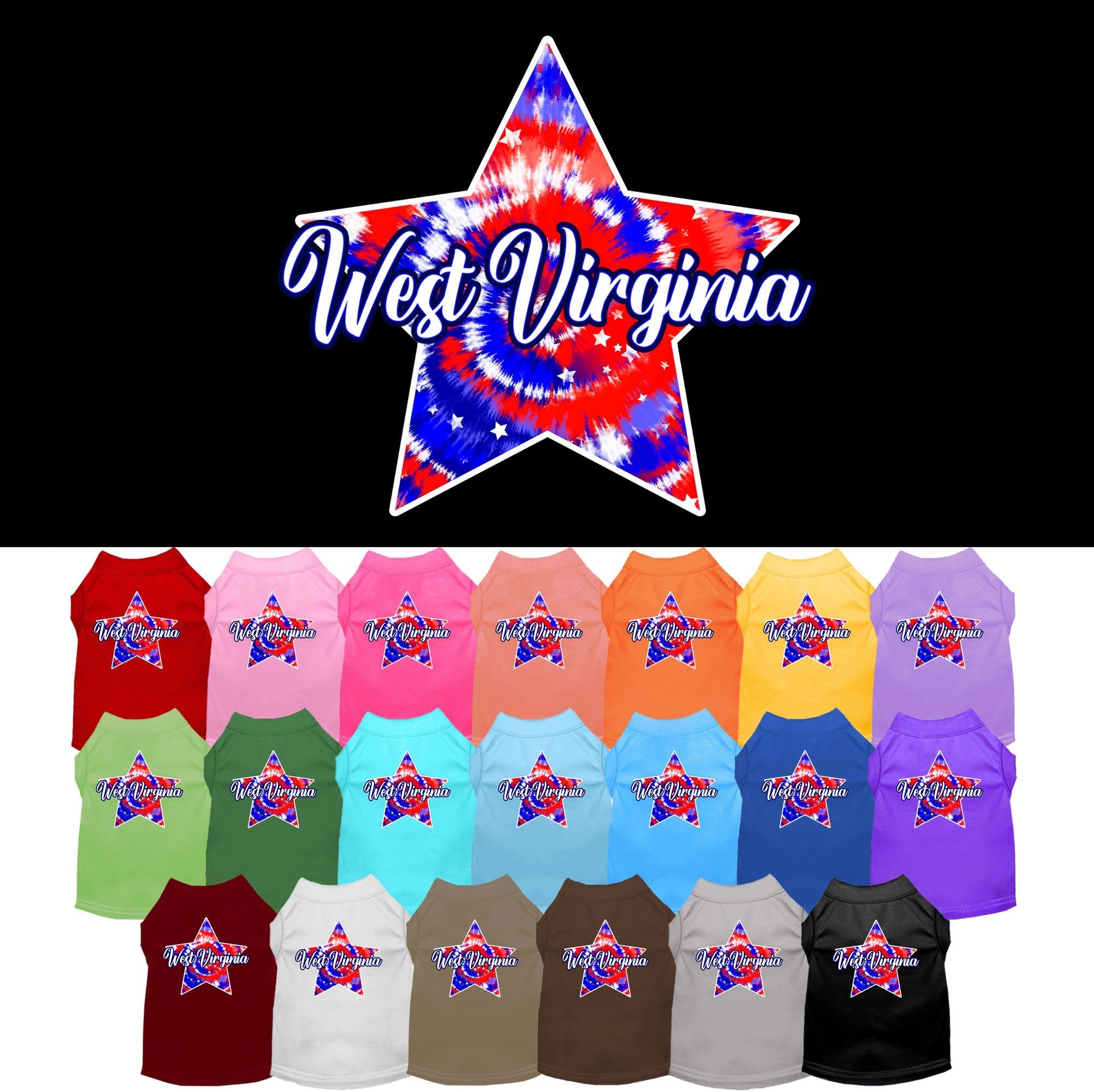 Pet Dog & Cat Screen Printed Shirt for Medium to Large Pets (Sizes 2XL-6XL), "West Virginia Patriotic Tie Dye"