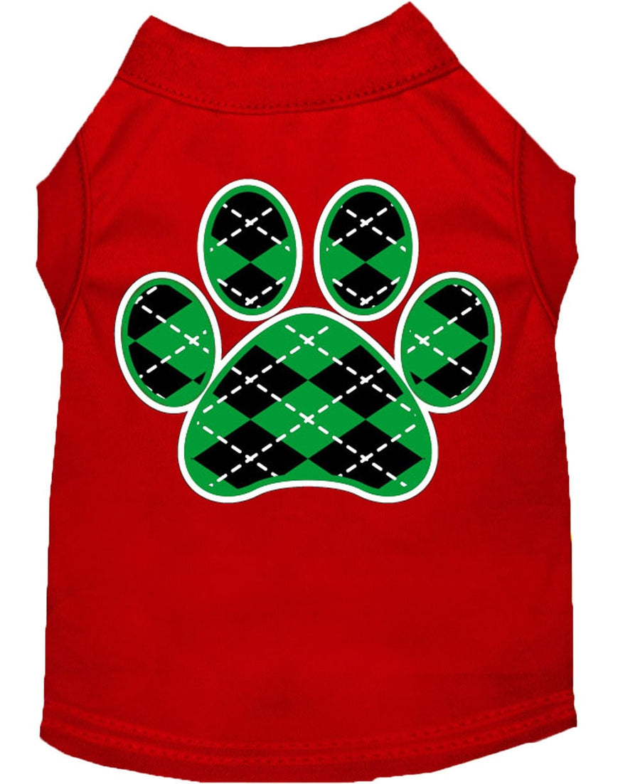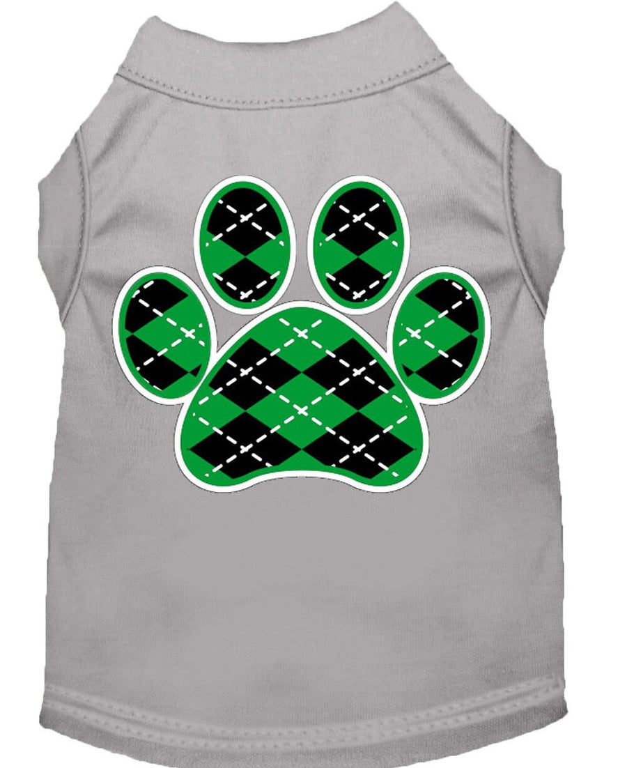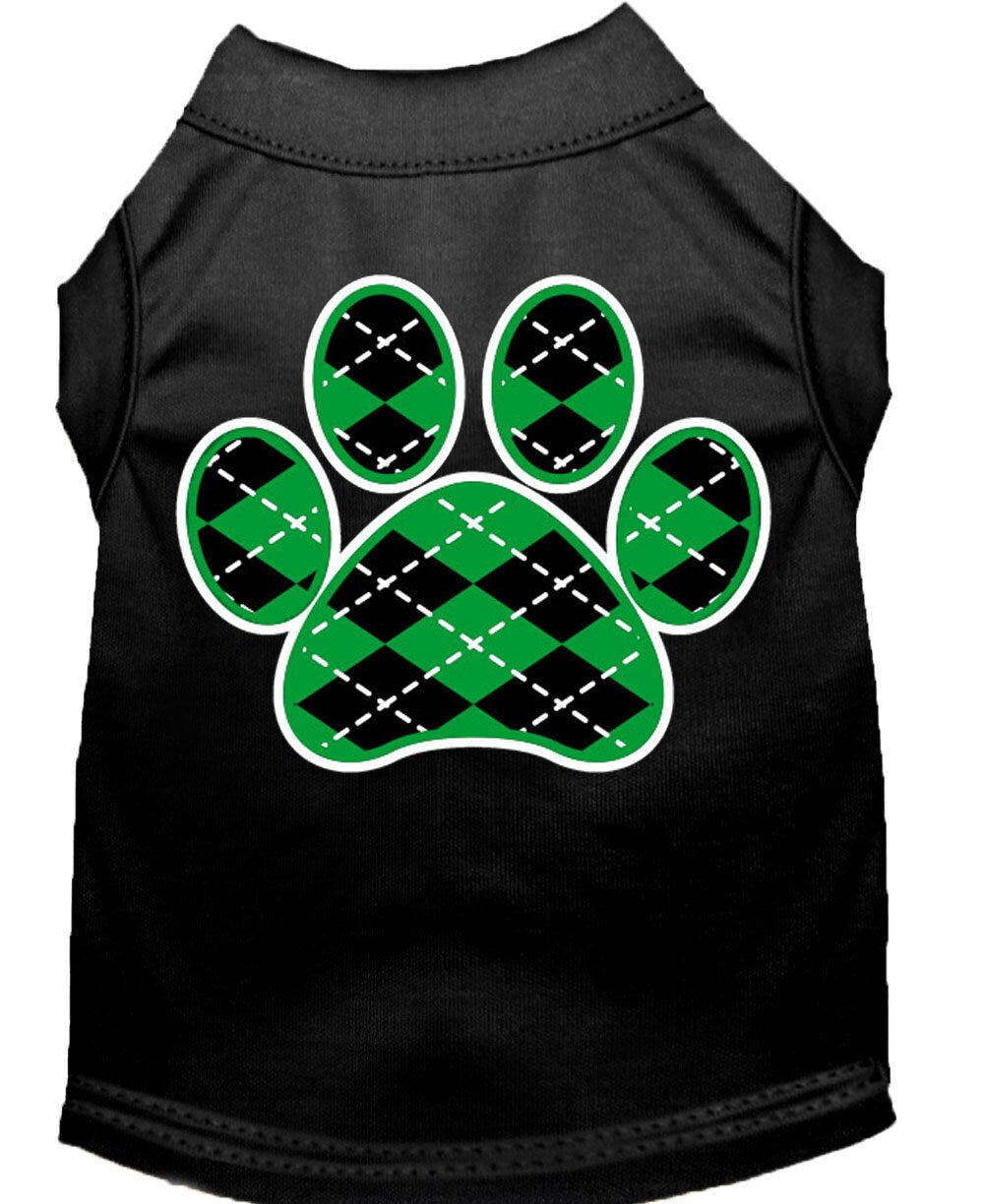 Pet Dog & Cat Shirt Screen Printed, "Argyle Paw Emerald Green"