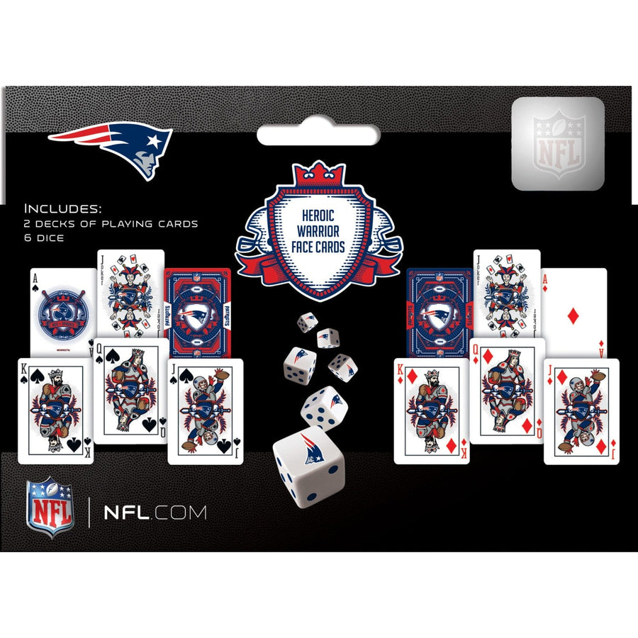 Who says you can't bring the casino to your next game night? These Officially Licensed NFL New England Patriots 2-pack playing card and dice sets are perfect for any game night. The high-quality Casino Style Cardstock playing cards are perfect for any fan of the New England Patriots. The deck features a unique team design and comes with a 6-piece 16mm D6 gaming dice set. Whether you're playing some poker or trying to beat the dealer at blackjack, these cards will help you do it in style. So roll the dice and get ready to bet big, because, with this set, you're going to win big. Go Team!