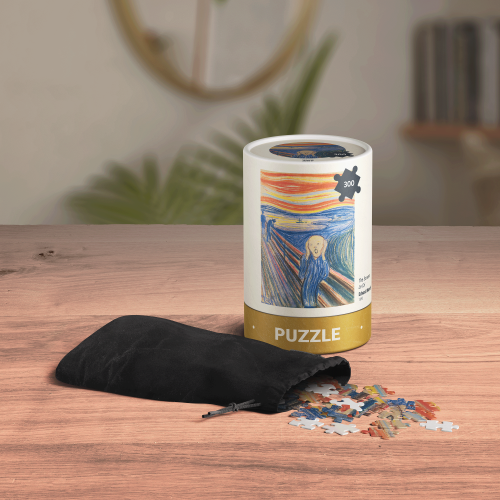 The Scream is Munch’s interpretation of a scream piercing through nature, experienced by the artist while on a walk after his two companions, as seen in the background of the painting, have left him. While seemingly autobiographical, the subject of the painting is distorted, bearing no physical resemblance to the artist, but rather his anguished state of being.