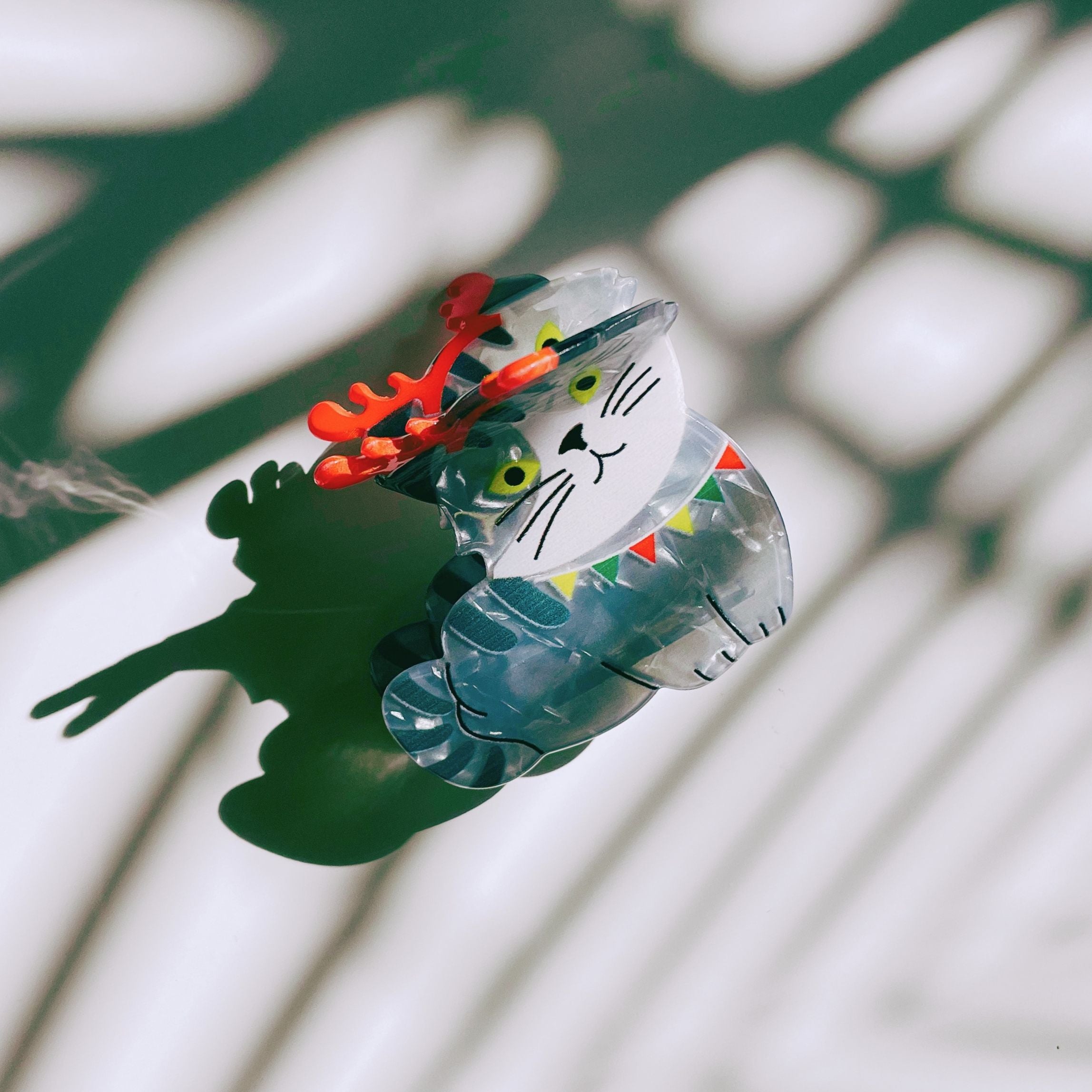 Bring a dash of holiday magic to your hair with the Mini Reindeer Kitten Hair Claw! This cute and festive clip combines the charm of a playful kitten with the spirit of the season, making it the perfect accessory for adding a fun, whimsical touch to your holiday look.