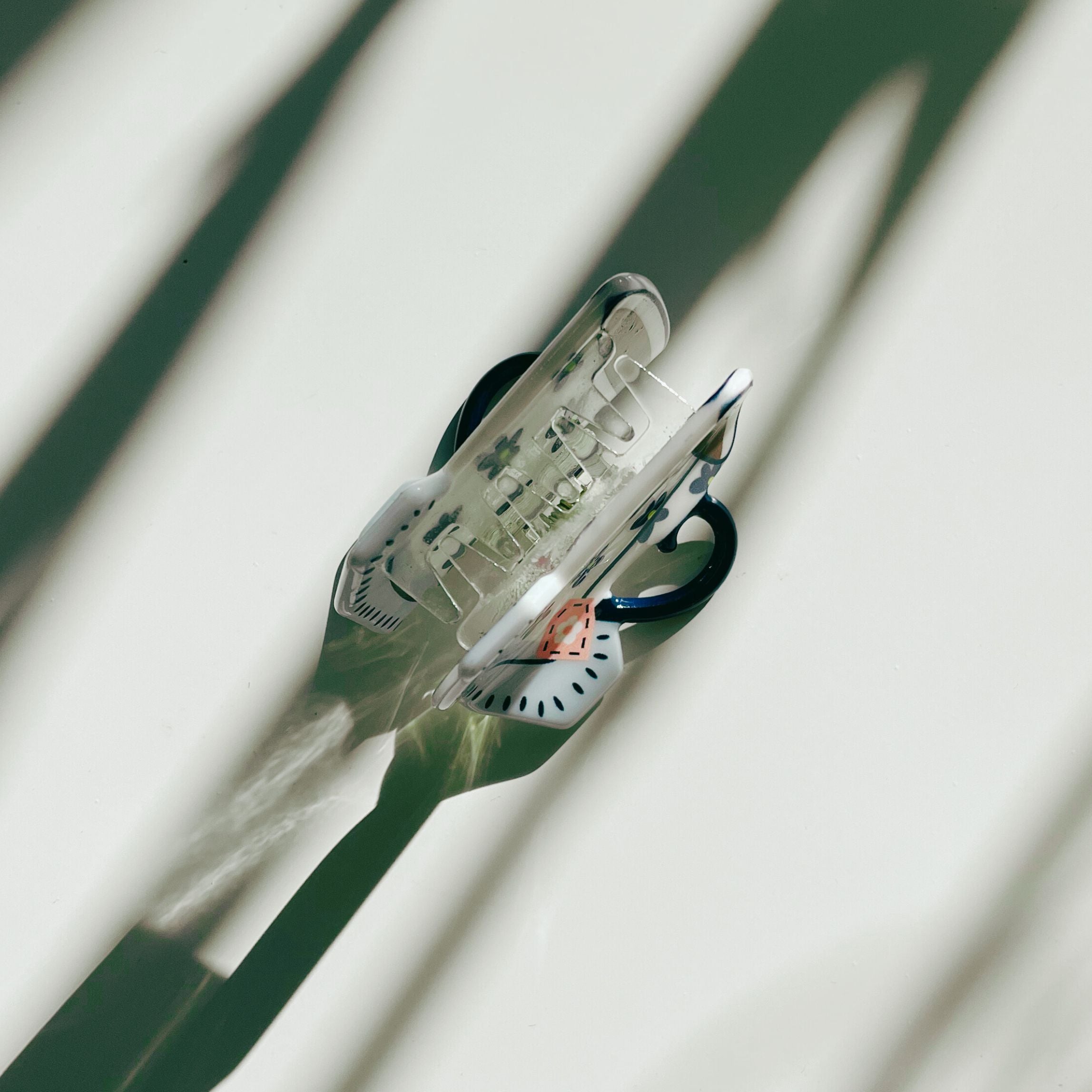 Bring a fresh, serene touch to your hair with the Mini White Tea Cup Hair Clip. Featuring a crisp white base and delicate blue floral accents, this charming accessory combines elegance with a hint of nature-inspired beauty.