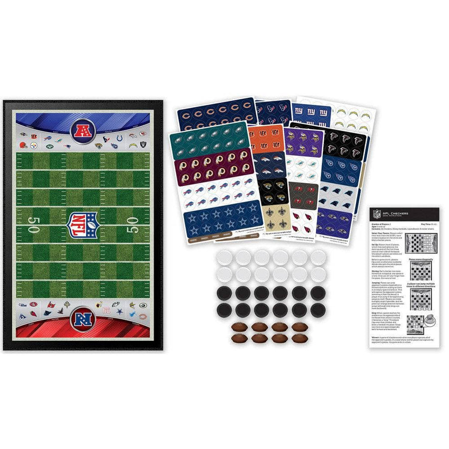 If you're a fan of the NFL, then you're going to love this officially licensed MasterPieces NFL Checkers Board Game. This classic game of checkers is a ton of fun for children and adults ages 6 and up, and it's a great way to show your NFL pride. This checkers game comes with 24 League checkers pieces, 8 football helmet king pieces, a 13 inches x 21.375 inches game board, 1 sticker sheet, and an instruction sheet. So get ready to put your skills to the test and crown yourself the checkers champion!