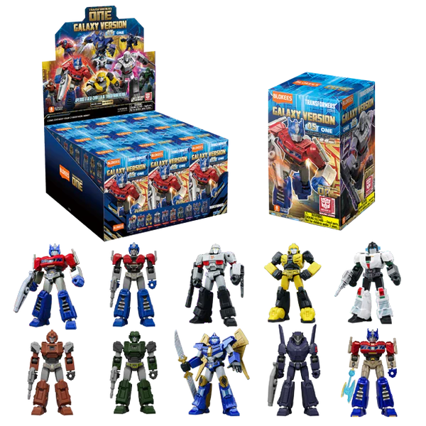The Transformers: One Galaxy Version 5 Blokees Mini Model Kit includes 9 randomly selected, blind-packaged model kits.
