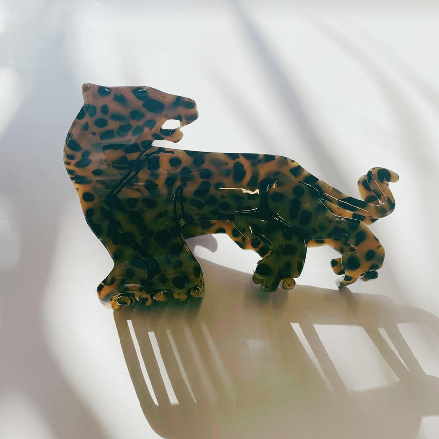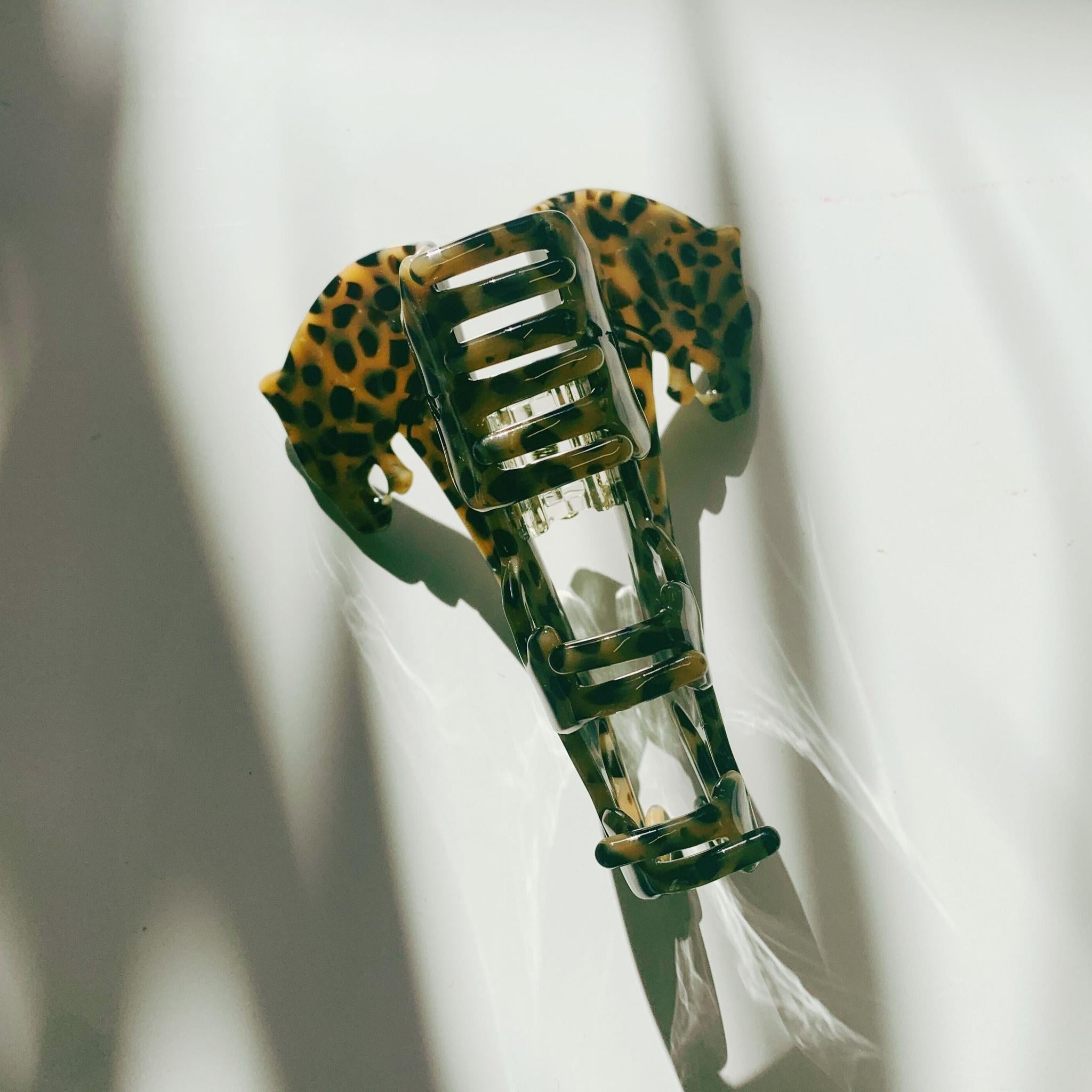 Add a wildness touch to your hair with this Shaped Cheetah Hair Claw . Effortlessly stylish, compact, and convenient - this hair claw is a must-have for any fashionista.