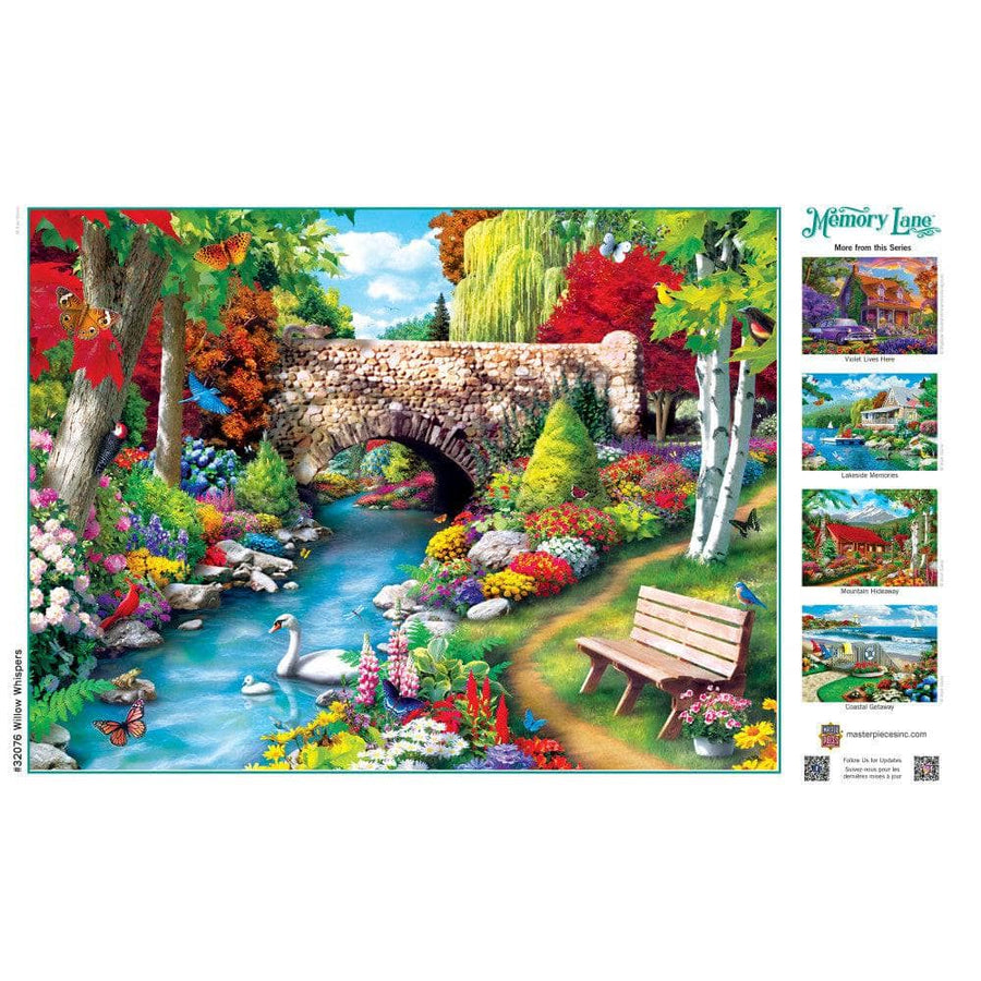 This MasterPieces 18" x 24" Memory Lane 300PC EZ Grip Puzzle depicts a festive fall scene, complete with pumpkins, orange leaves falling from the trees, a big red barn, and beautiful brown horses in the pasture. It was painted by the talented Alan Giana, whose paintings of colorful paths, charming country hideaways, and tranquil coastal gateways are touching the hearts of people everywhere. His inspiring paintings now appear on hundreds of products that are sold around the world. Alan lives with his loving wife, Pamela, in the picturesque town of Simsbury, Connecticut. The EZ-Grip technology used to make this puzzle offers larger puzzle pieces that snap together perfectly, without compromising image quality. To reduce its impact on our environment, the chipboard used in this puzzle is made of 100% recycled material.