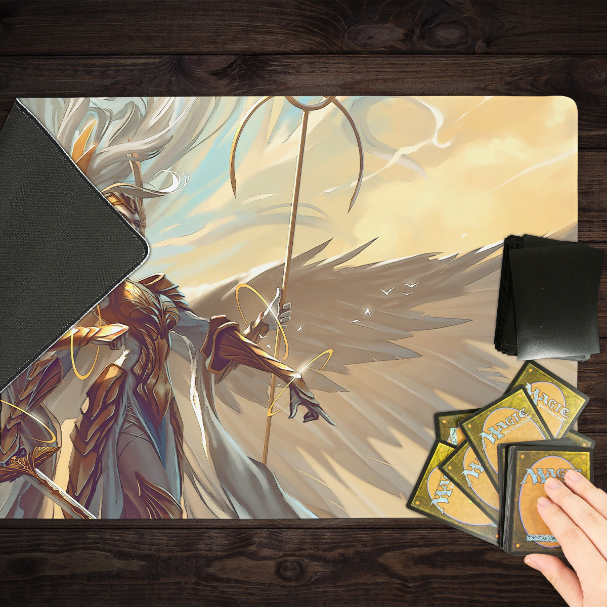 If Gabriel wasn’t quite doing it for you, then perhaps Dominic can do a better job. Specifically, Dominic, Archangel of Judgment from Asur Misoa, which is beautifully printed on this premium playmat! You’ll find that this mat has a smooth cloth material on the top that helps you to handle and pick up your cards with ease. No more sliding your cards to the edge of a surface. It’s also extremely soft, which is great for keeping your cards in good condition while you play as well. On the bottom, there is an anti-slip rubber backing that grips tightly on every surface and keeps your mat from sliding or shifting during pivotal moments of the game. Your mat will be just as still and straight as it was when the battle began. By bringing these materials together, we’ve crafted a playmat that looks good, feels good, and keeps your most precious cards protected while you play as well.