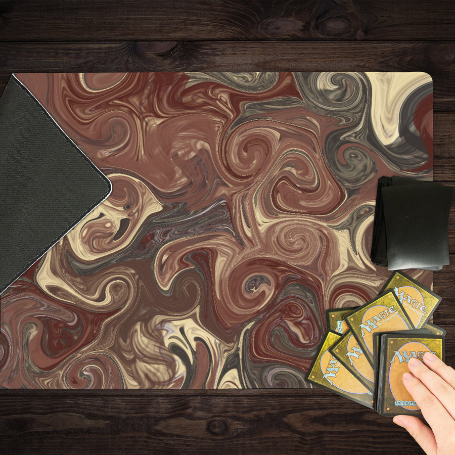 Standard Playmat measures at 24” x 14” inches and is 1/16 of an inch thick. It’s made with a smooth cloth top and strong rubber backing.